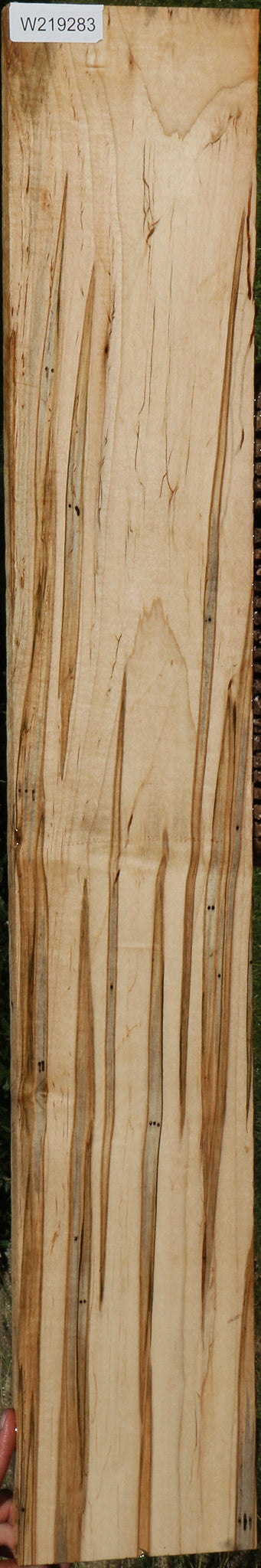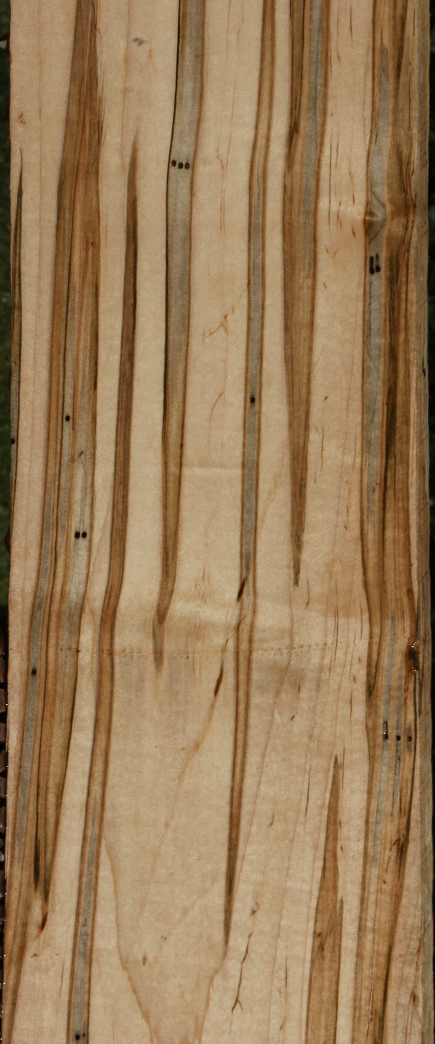 This colorful Ambrosia Maple has stunning streaks and the possibility of fiddleback. It is a unique hardwood that is kiln dried and ready to use. The colorful ambrosia streaks are caused by the Ambrosia beetle. Small Ambrosia beetle holes are present. Boards over 36" long may have a slight 1/16" to 1/8" bow or twist. Closed grain makes this Maple species easy to finish! This piece has bug holes. Please see pictures for details.