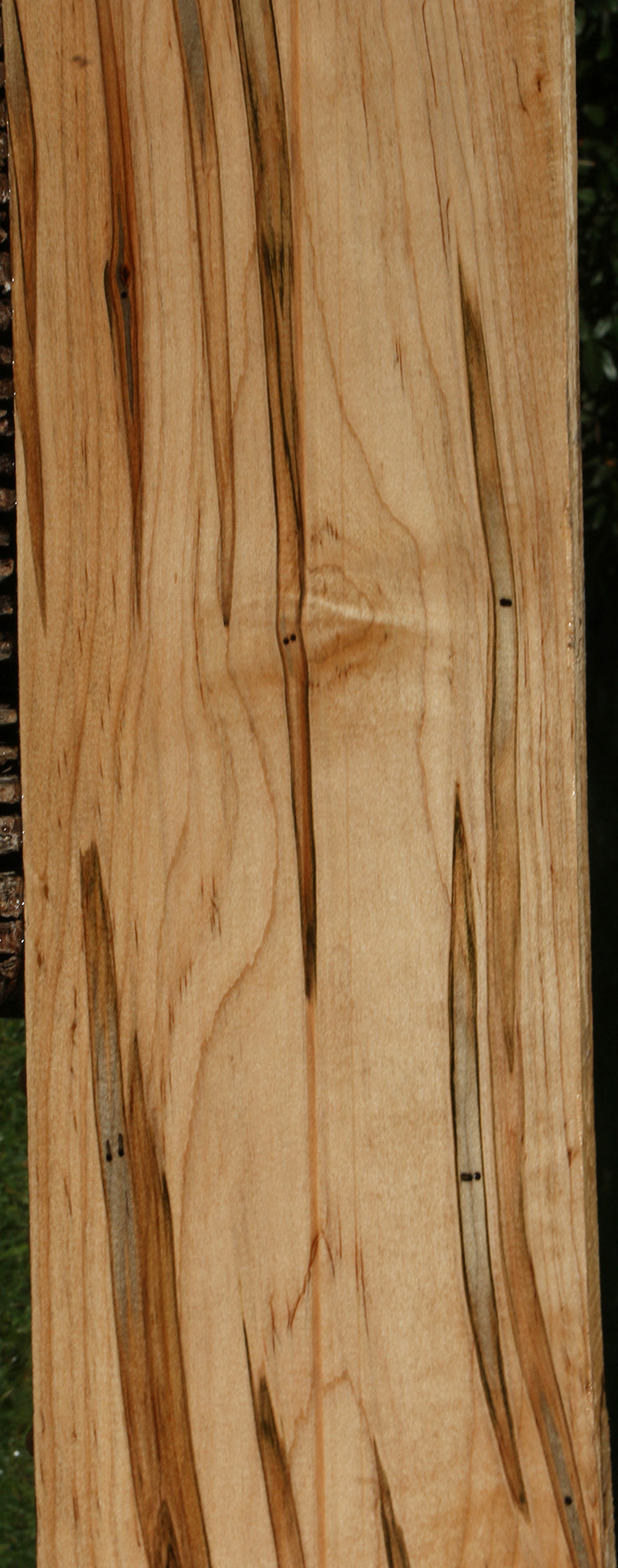 This colorful Ambrosia Maple has stunning streaks and the possibility of fiddleback. It is a unique hardwood that is kiln dried and ready to use. The colorful ambrosia streaks are caused by the Ambrosia beetle. Small Ambrosia beetle holes are present. Boards over 36" long may have a slight 1/16" to 1/8" bow or twist. Closed grain makes this Maple species easy to finish! This piece has bug holes, inclusions, and a partial rough edge. Please see pictures for details.
