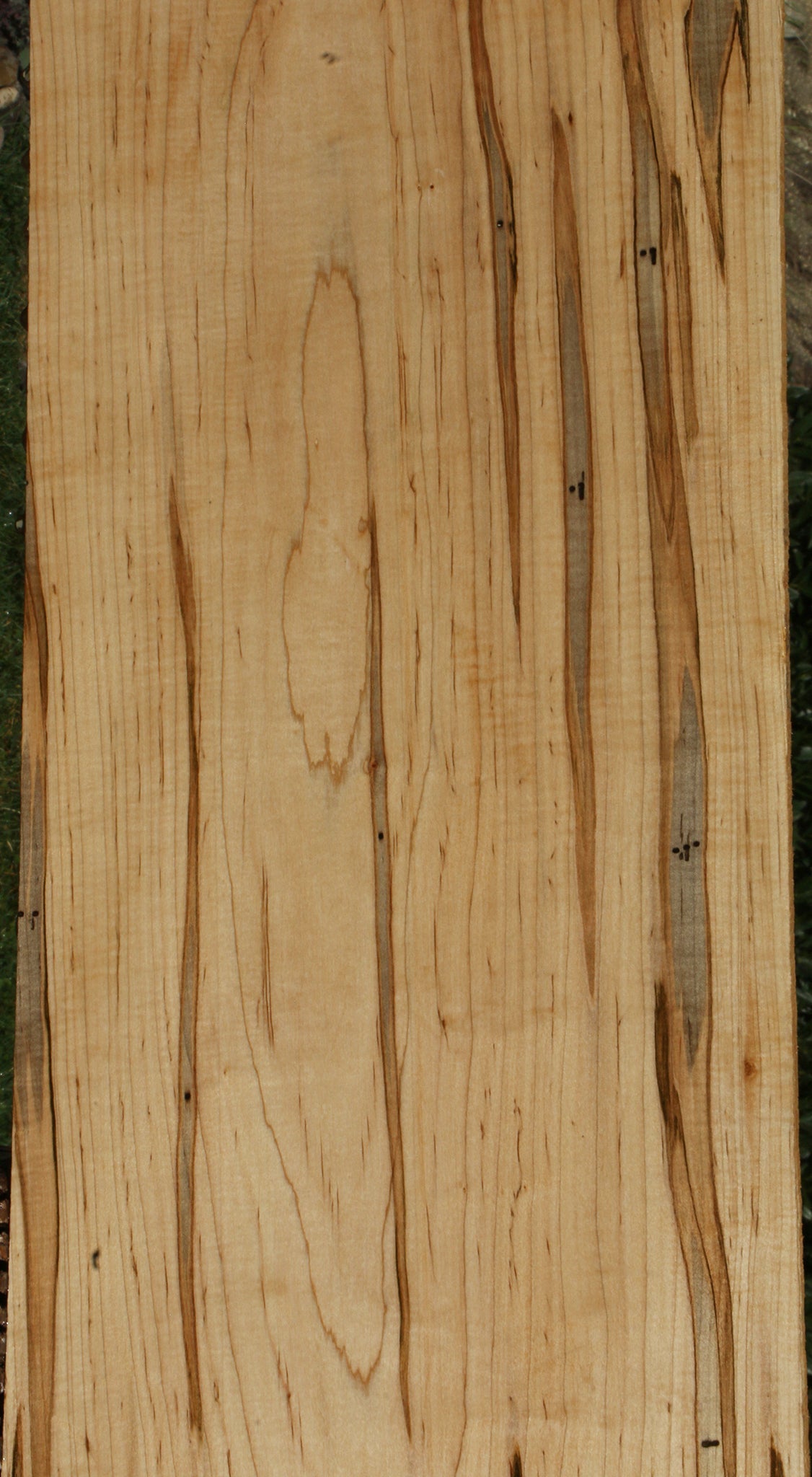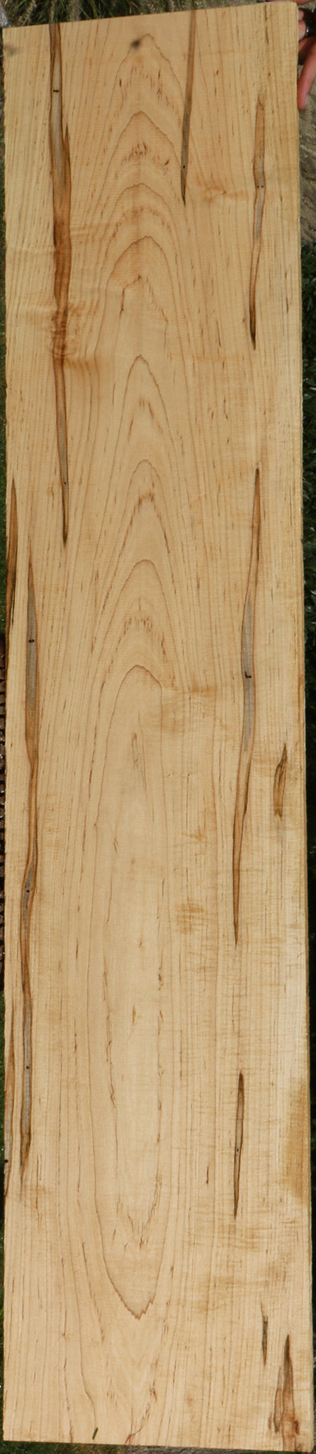 This colorful Ambrosia Maple has stunning streaks and the possibility of fiddleback. It is a unique hardwood that is kiln dried and ready to use. The colorful ambrosia streaks are caused by the Ambrosia beetle. Small Ambrosia beetle holes are present. Boards over 36" long may have a slight 1/16" to 1/8" bow or twist. Closed grain makes this Maple species easy to finish! This piece has bug holes, knots, and planer skip. Please see pictures for details.