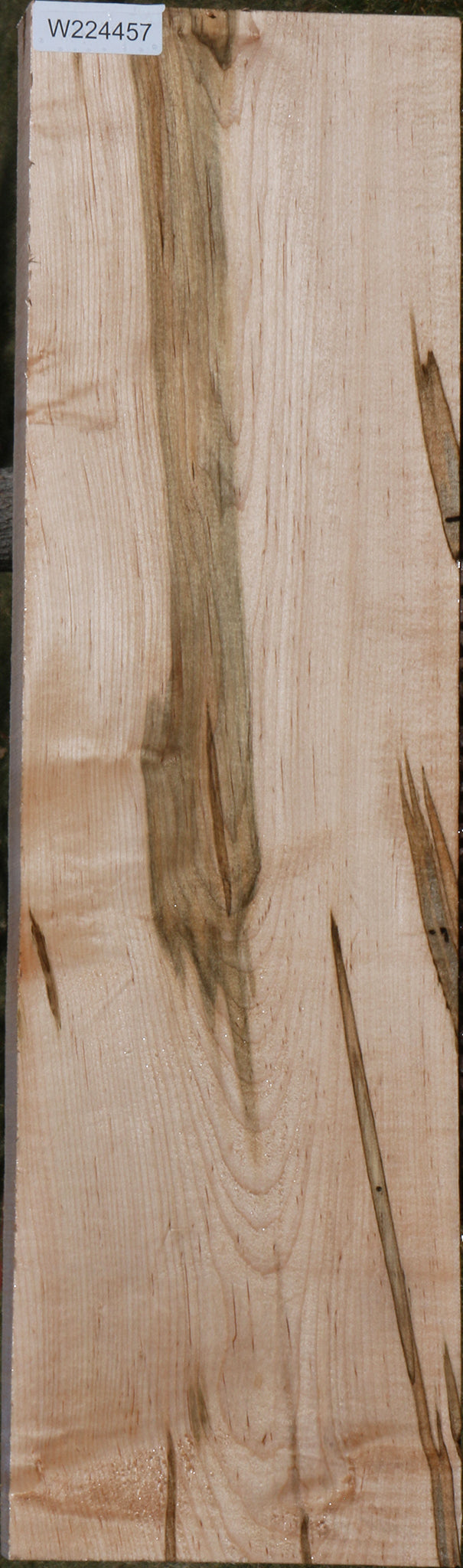 This colorful Ambrosia Maple has stunning streaks and the possibility of fiddleback. It is a unique hardwood that is kiln dried and ready to use. The colorful ambrosia streaks are caused by the Ambrosia beetle. Small Ambrosia beetle holes are present. Boards over 36" long may have a slight 1/16" to 1/8" bow or twist. Closed grain makes this Maple species easy to finish! This piece has a rough corner. Please see pictures for details.