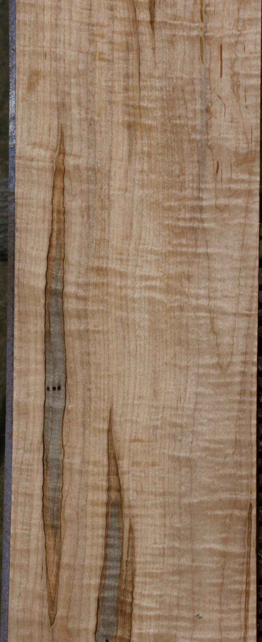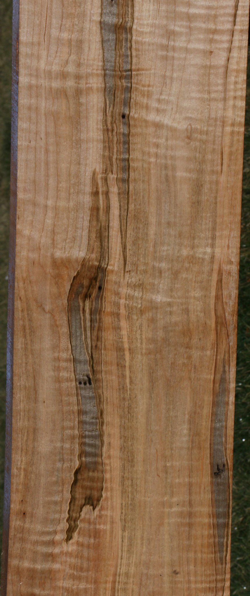 This colorful Ambrosia Maple has stunning streaks and the possibility of fiddleback. It is a unique hardwood that is kiln dried and ready to use. The colorful ambrosia streaks are caused by the Ambrosia beetle. Small Ambrosia beetle holes are present. Boards over 36" long may have a slight 1/16" to 1/8" bow or twist. Closed grain makes this Maple species easy to finish! This piece has a rough corner. Please see pictures for details.