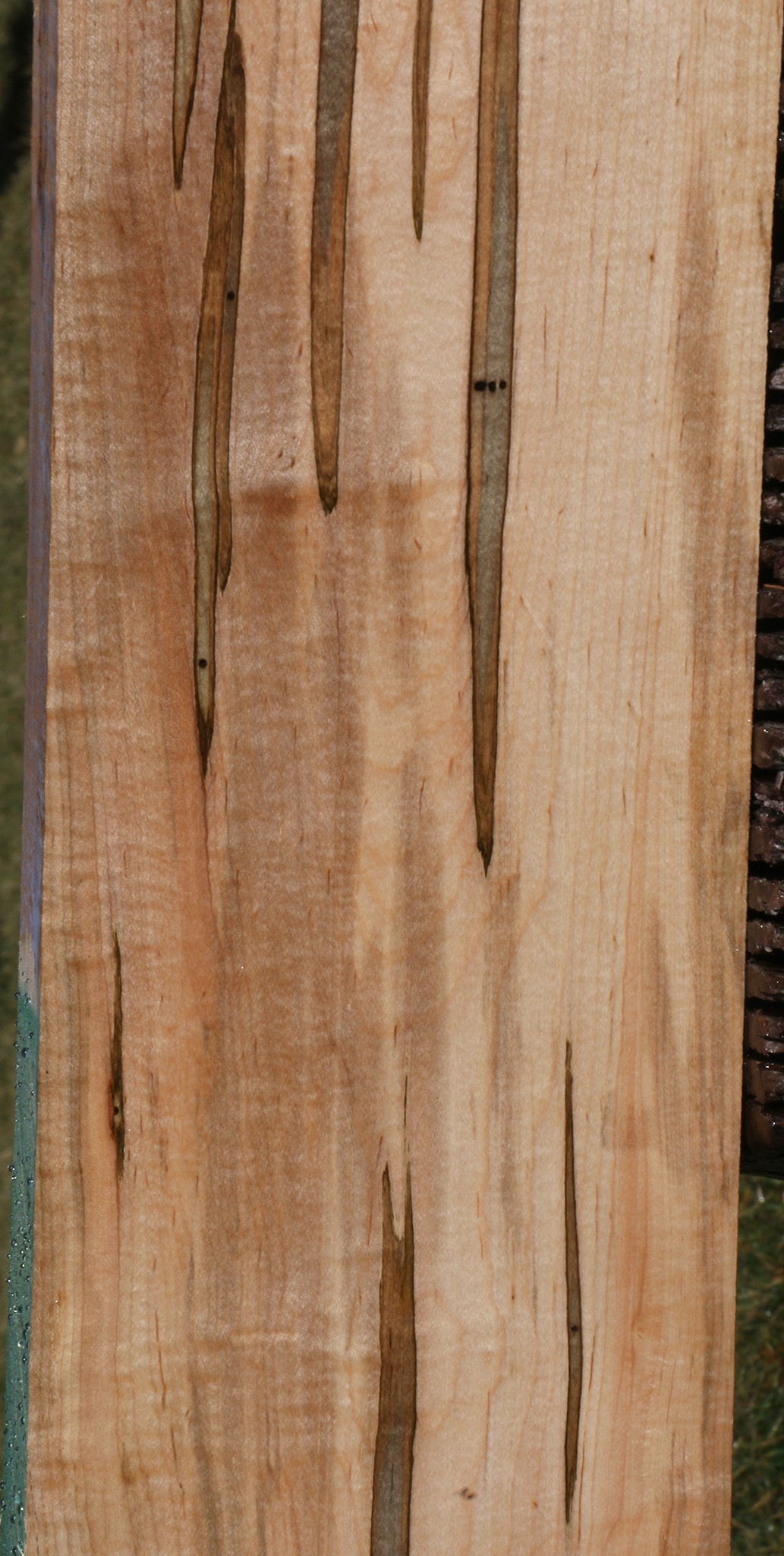This colorful Ambrosia Maple has stunning streaks and the possibility of fiddleback. It is a unique hardwood that is kiln dried and ready to use. The colorful ambrosia streaks are caused by the Ambrosia beetle. Small Ambrosia beetle holes are present. Boards over 36" long may have a slight 1/16" to 1/8" bow or twist. Closed grain makes this Maple species easy to finish! This piece has a rough corner and inclusions. Please see pictures for details.