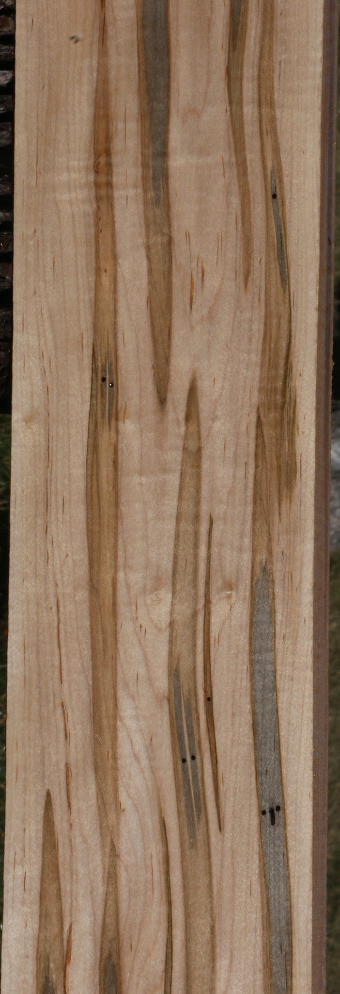 This colorful Ambrosia Maple has stunning streaks and the possibility of fiddleback. It is a unique hardwood that is kiln dried and ready to use. The colorful ambrosia streaks are caused by the Ambrosia beetle. Small Ambrosia beetle holes are present. Boards over 36" long may have a slight 1/16" to 1/8" bow or twist. Closed grain makes this Maple species easy to finish!