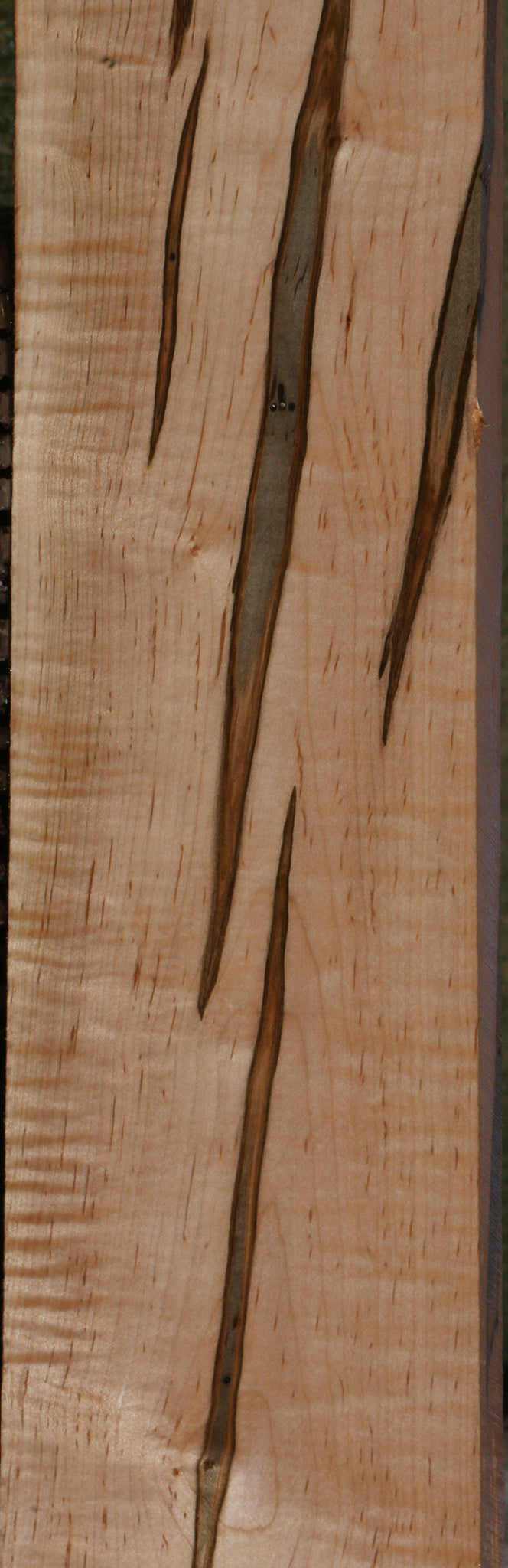 This colorful Ambrosia Maple has stunning streaks and the possibility of fiddleback. It is a unique hardwood that is kiln dried and ready to use. The colorful ambrosia streaks are caused by the Ambrosia beetle. Small Ambrosia beetle holes are present. Boards over 36" long may have a slight 1/16" to 1/8" bow or twist. Closed grain makes this Maple species easy to finish!
