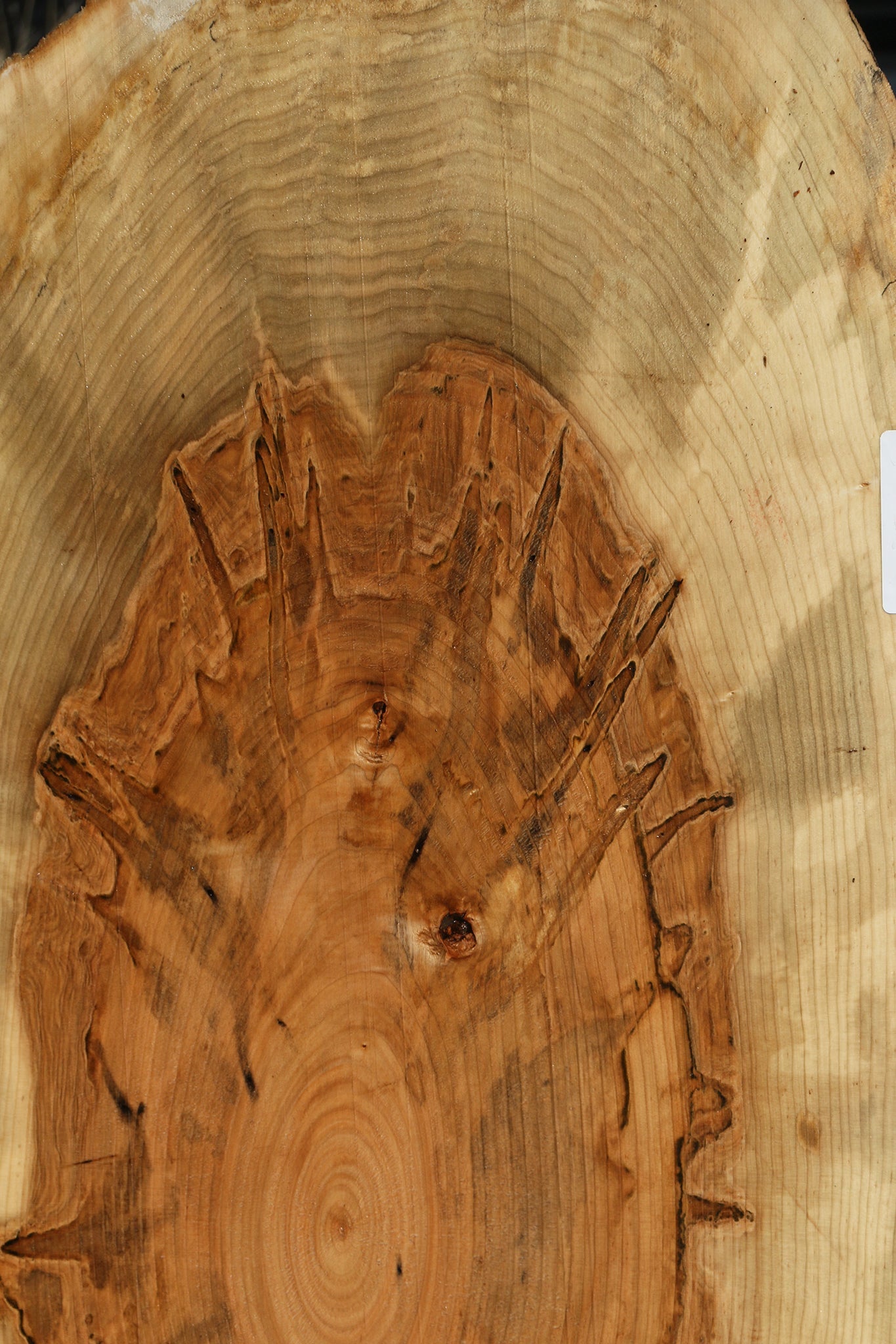 This colorful Ambrosia Maple has stunning color streaks and the possibility of fiddleback. It is a unique hardwood that is kiln dried and ready to use. The colorful ambrosia streaks are caused by the Ambrosia beetle. Some small Ambrosia beetle holes may be present. Live edges are present and may contain an occasional machine mark or check. Cookies over 20" long may have a slight 1/16" to 1/8" bow, cup, or twist. Closed grain makes this Maple species easy to finish! This piece has inclusions. Please see pictures for details.