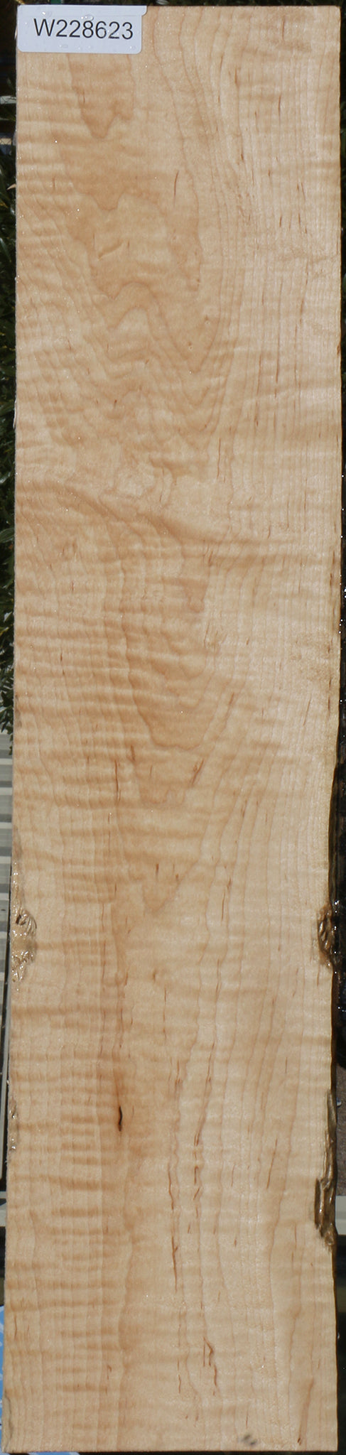 Beautifully figured, with nice color and fiddleback in most pieces, this Maple lumber is a unique hardwood that is kiln dried and ready to use. The curl will really make your woodworking projects "pop"! Boards over 36" in length may have a 1/16" to 1/8" bow or twist. An occasional small bug/pin hole may be present. Closed grain makes this Maple species easy to finish! This piece has partial rough edges. Please see pictures for details.