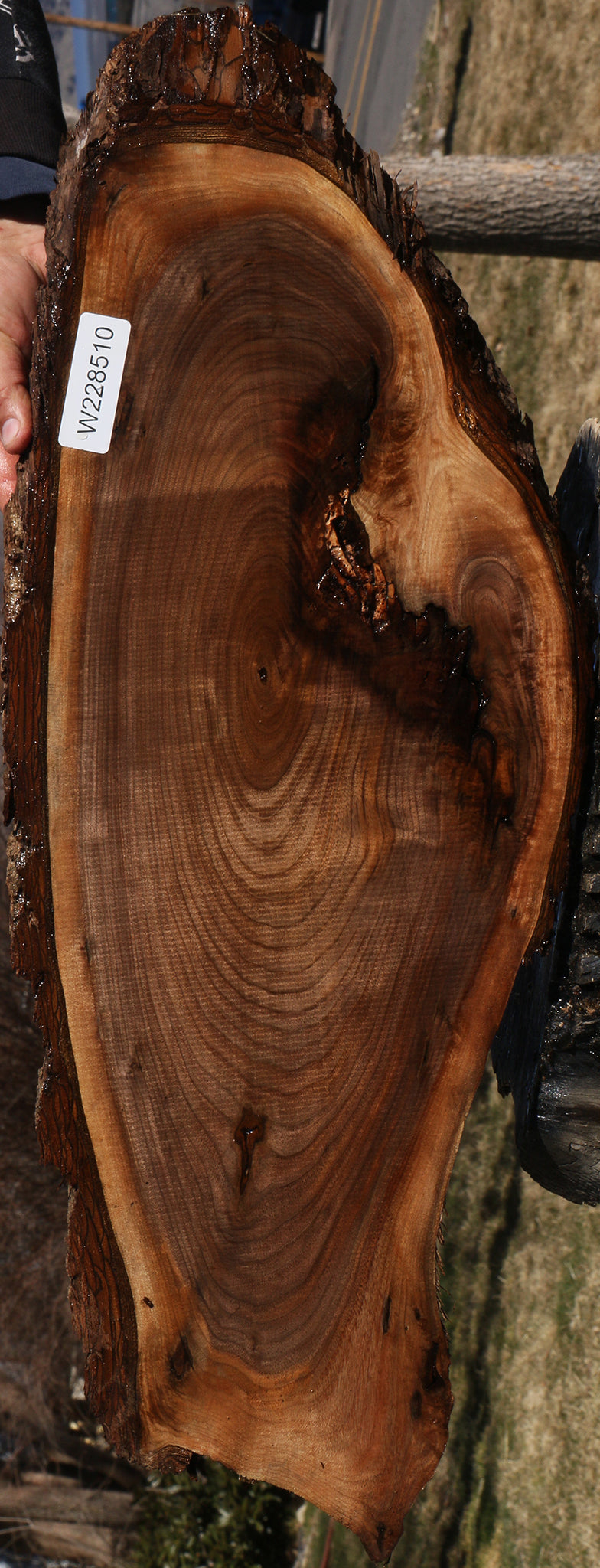 This beautiful American Black Walnut cookie is ideal for making unique woodworking projects like charcuterie boards! Occasional small end or surface checks may be present. It has been kiln dried, surfaced on two sides, and is ready to use. A slight 1/16" to 1/8" bow/twist may be found in cookies over 24" long. This wood is ideal for any special project that you have in mind! All stock is listed and the supply is limited, so shop fast! This piece has inclusions and splits. Please see pictures for details.