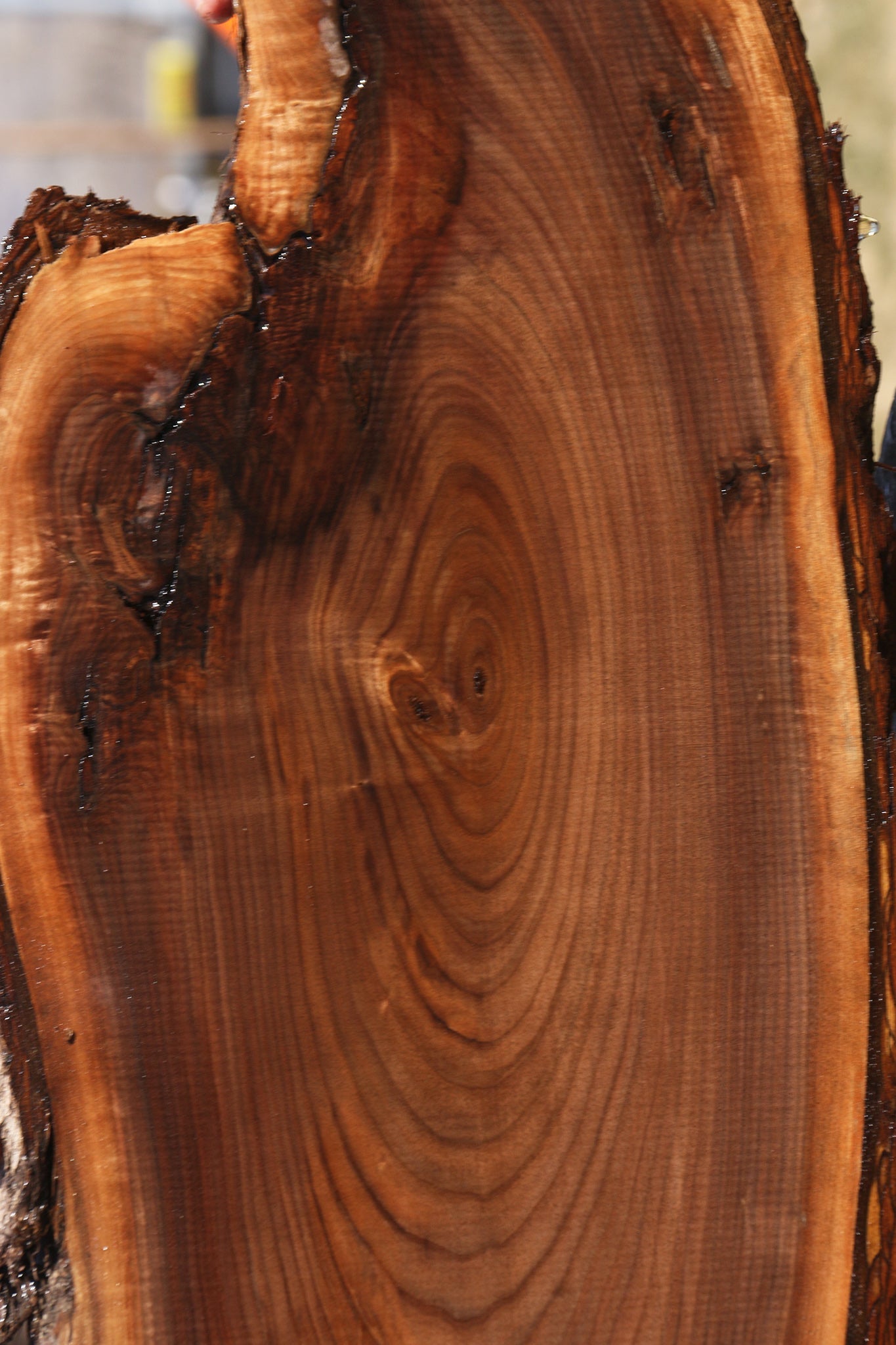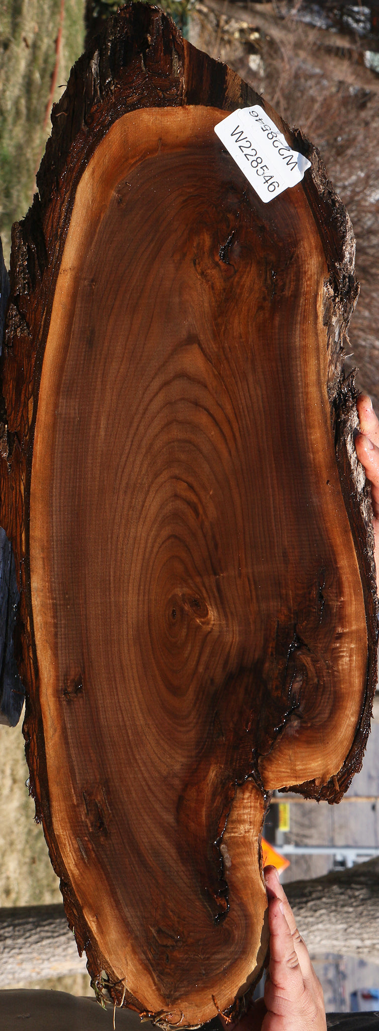 This beautiful American Black Walnut cookie is ideal for making unique woodworking projects like charcuterie boards! Occasional small end or surface checks may be present. It has been kiln dried, surfaced on two sides, and is ready to use. A slight 1/16" to 1/8" bow/twist may be found in cookies over 24" long. This wood is ideal for any special project that you have in mind! All stock is listed and the supply is limited, so shop fast! This piece has inclusions and splits. Please see pictures for details.