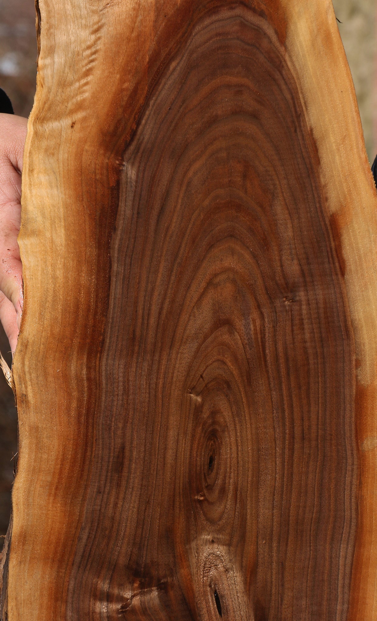 This beautiful American Black Walnut cookie is ideal for making unique woodworking projects like charcuterie boards! Occasional small end or surface checks may be present. It has been kiln dried, surfaced on two sides, and is ready to use. A slight 1/16" to 1/8" bow/twist may be found in cookies over 24" long. This wood is ideal for any special project that you have in mind! All stock is listed and the supply is limited, so shop fast! This piece has inclusions and planer skip. Please see pictures for details.