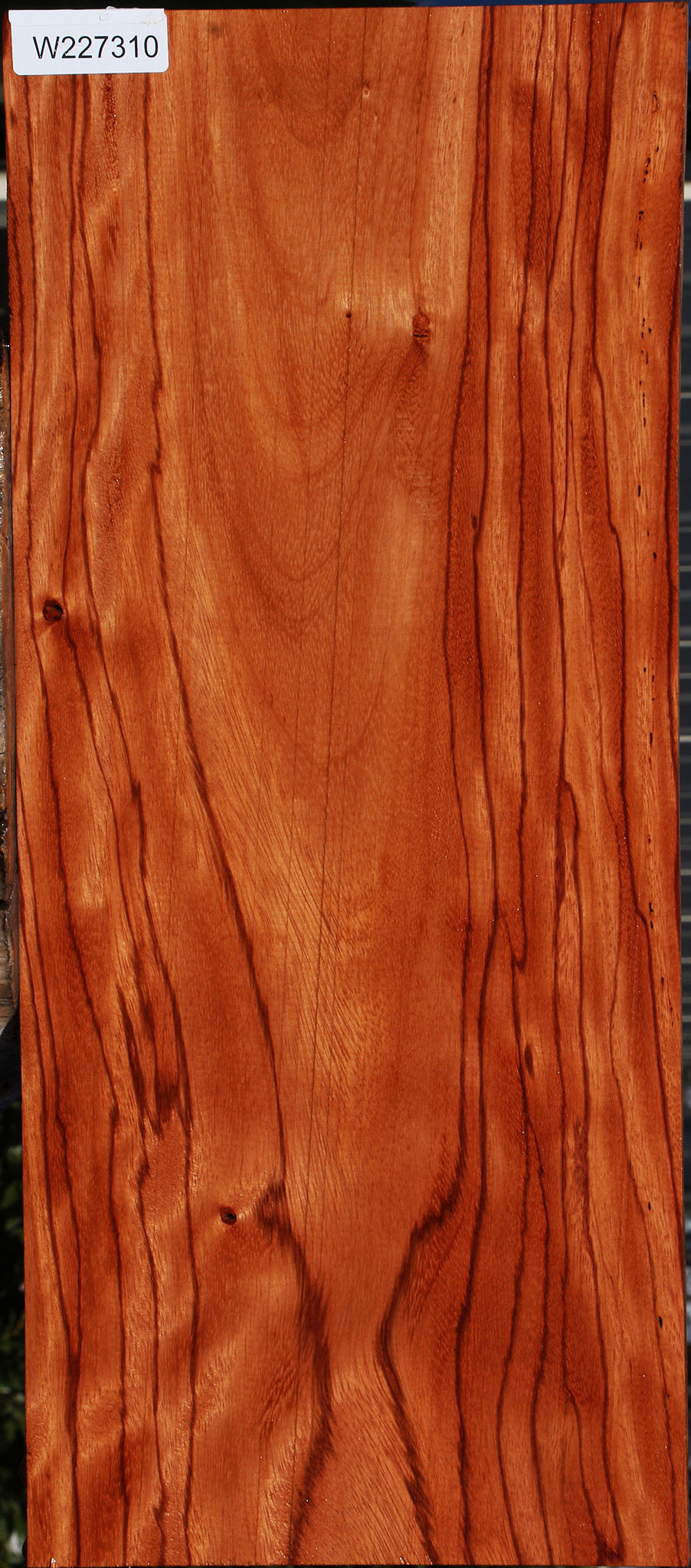 This beautiful species is hard to obtain! Nice dark variegated veins run through rich pinkish red color. Boards are kiln dried and ready to use. Small gum pockets are normal for this species and usually run parallel to the grain. Boards over 36" may have a slight 1/8" bow or twist. Bring a new species to your woodworking with this unusual African gem! This piece has inclusions and a small void. Please see pictures for details.