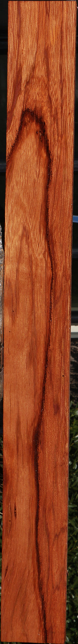 This beautiful species is hard to obtain! Nice dark variegated veins run through rich pinkish red color. Boards are kiln dried and ready to use. Small gum pockets are normal for this species and usually run parallel to the grain. Boards over 36" may have a slight 1/8" bow or twist. Bring a new species to your woodworking with this unusual African gem! This piece has bug holes. Please see pictures for details.