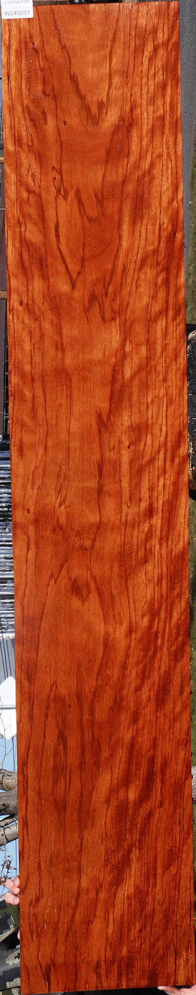 This beautiful species is hard to obtain! Dark variegated veins run through rich pinkish red color. This lumber is kiln dried and ready to use. Small gum pockets are normal for this species and usually run parallel to the grain. Boards over 36" may have a slight 1/8" bow or twist. Bring a new species to your woodworking with this unusual African gem! This piece has inclusions. Please see pictures for details. This item does not qualify for free shipping. If left whole, freight shipping will be billed AFTER checkout. If cut in half, UPS Ground shipping will be billed AFTER checkout. For questions or estimates, please contact our office.