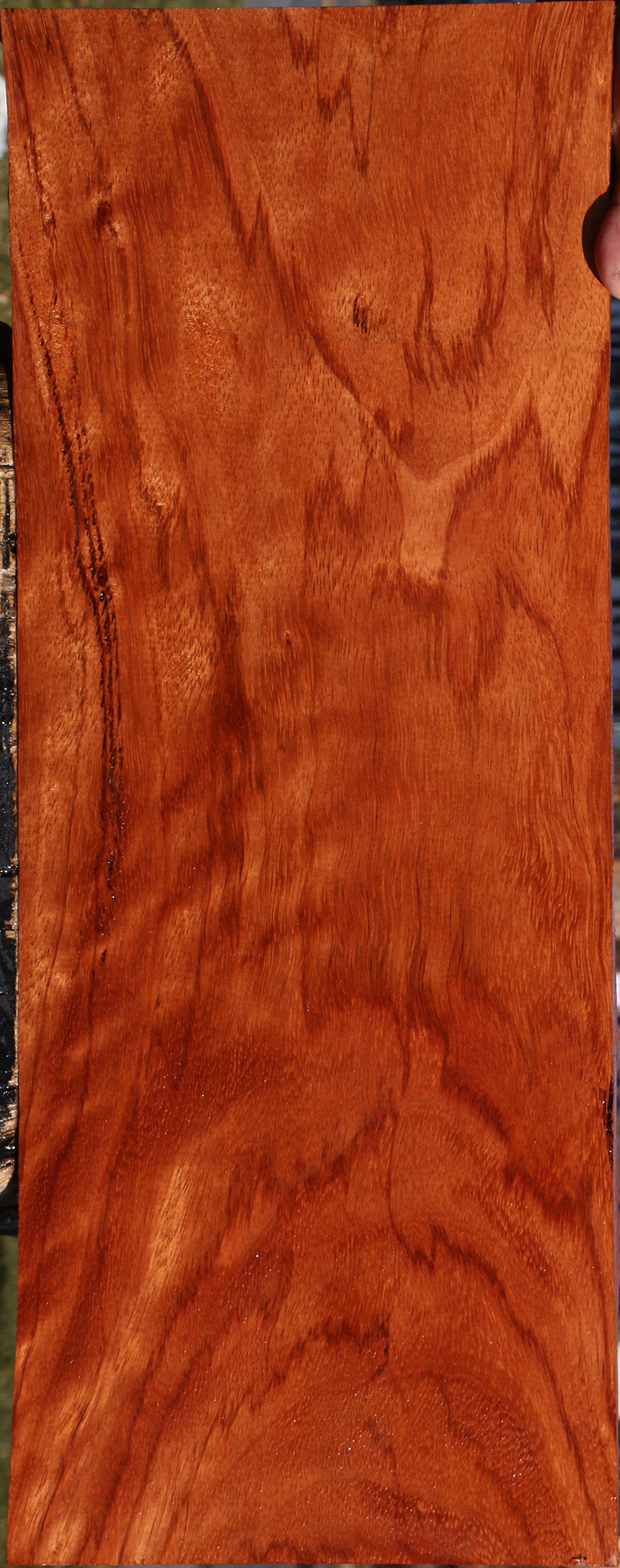 This beautiful species is hard to obtain! Dark variegated veins run through rich pinkish red color. This lumber is kiln dried and ready to use. Small gum pockets are normal for this species and usually run parallel to the grain. Boards over 36" may have a slight 1/8" bow or twist. Bring a new species to your woodworking with this unusual African gem! This piece has inclusions. Please see pictures for details.