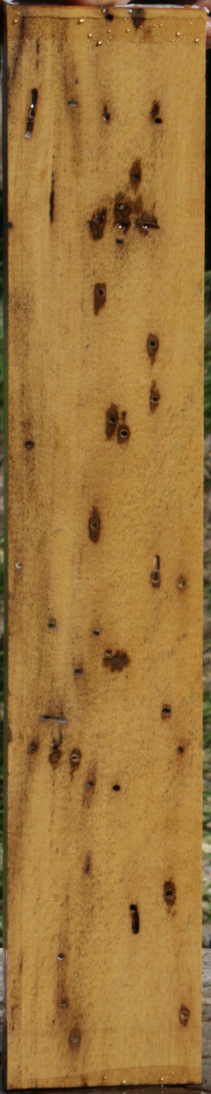 This beautiful Black and White Ebony has air dried for five years as of June 2022 and has been completely wax sealed or wax sealed on the ends. The majority is dry, but some of the wood contains residual moisture. Uncommonly beautiful, you’ll see the unique patterns and contrast in each individually pictured board! It is natural in this species to have hairline checks along the black stripes. Sandpaper and glue can easily remedy this! Pin holes may be present. We have carefully described the defects; however hairline checks can be present that are not specifically noted. This piece has pin holes, please see pictures for details.