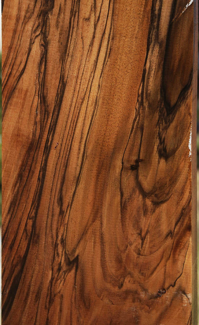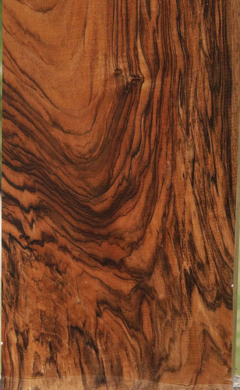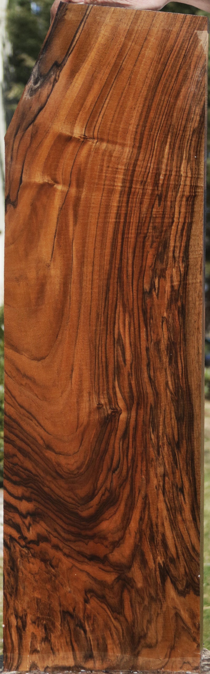 This beautiful material was cut from several hand selected logs. Photos feature an array of color, and figure, which ranges in intensity and uniqueness from piece to piece depending on which part of the log the wood was cut from. It has been air dried since 2015. It is dry and ready to use, but may contain a slight amount of residual moisture. This wood has been surfaced on two sides. Bowl blanks and turning squares are fully wax sealed. Hand picked for beauty, you’ll enjoy working this exquisite hardwood. There is Intense marblecake and this piece also has fiddleback present. It also has a 2 inch check on edge grain, though very minor. It would also be suitable for electric guitar.