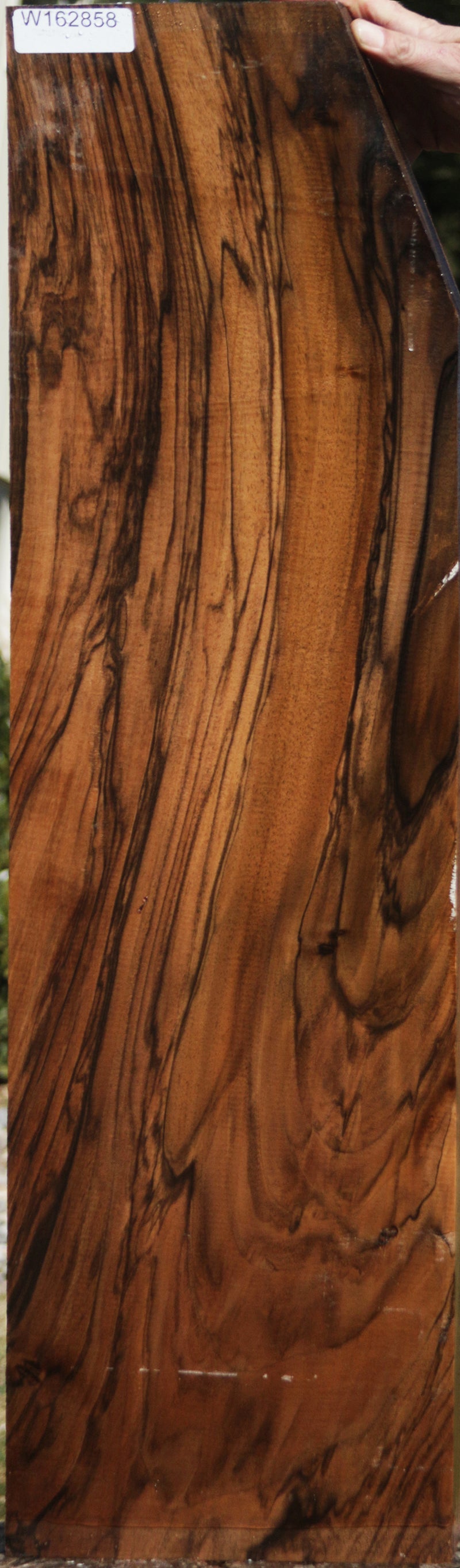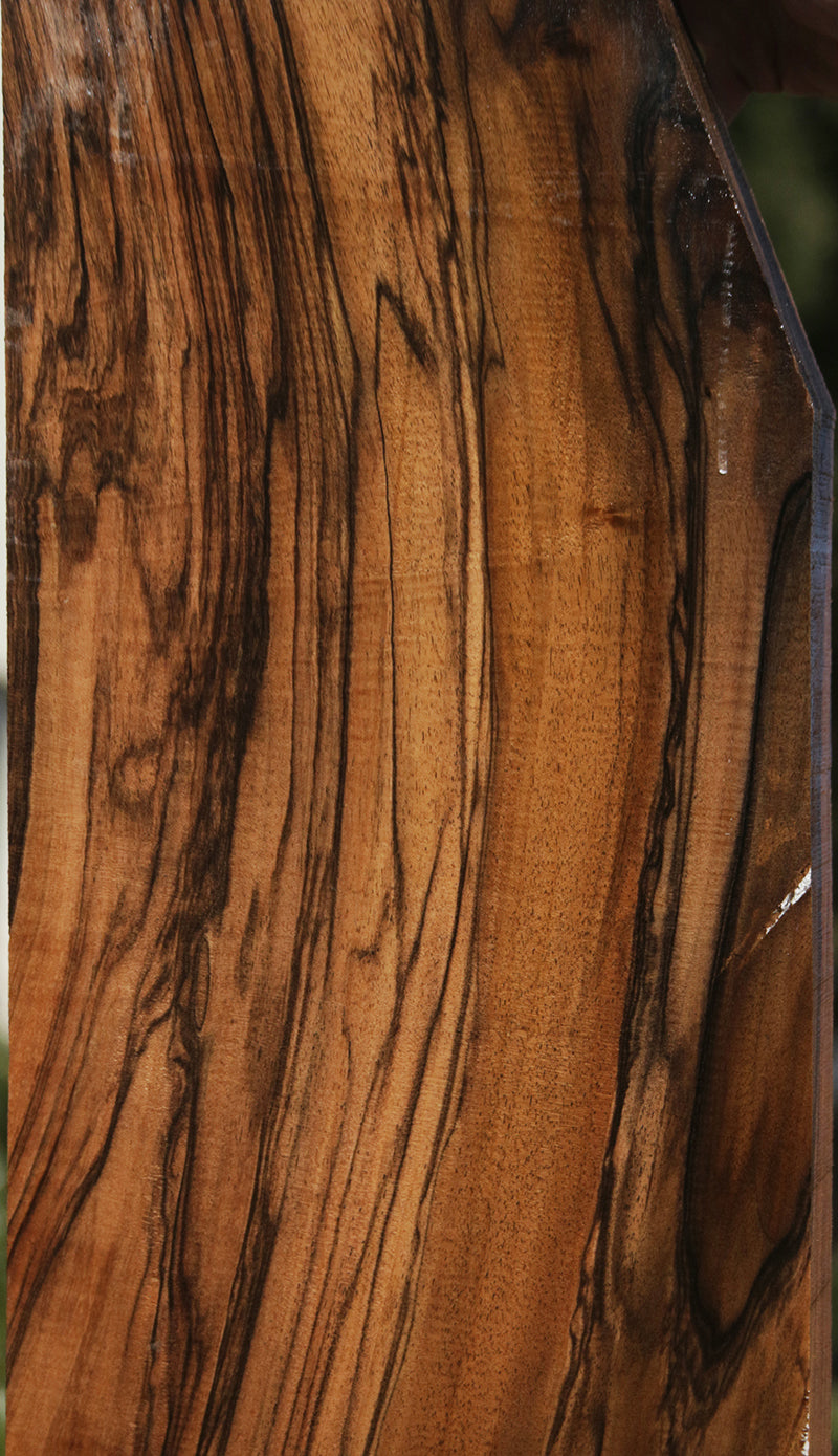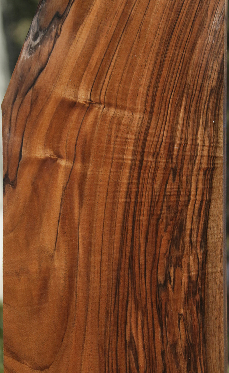 This beautiful material was cut from several hand selected logs. Photos feature an array of color, and figure, which ranges in intensity and uniqueness from piece to piece depending on which part of the log the wood was cut from. It has been air dried since 2015. It is dry and ready to use, but may contain a slight amount of residual moisture. This wood has been surfaced on two sides. Bowl blanks and turning squares are fully wax sealed. Hand picked for beauty, you’ll enjoy working this exquisite hardwood. There is Intense marblecake and this piece also has fiddleback present. It also has a 2 inch check on edge grain, though very minor. It would also be suitable for electric guitar.