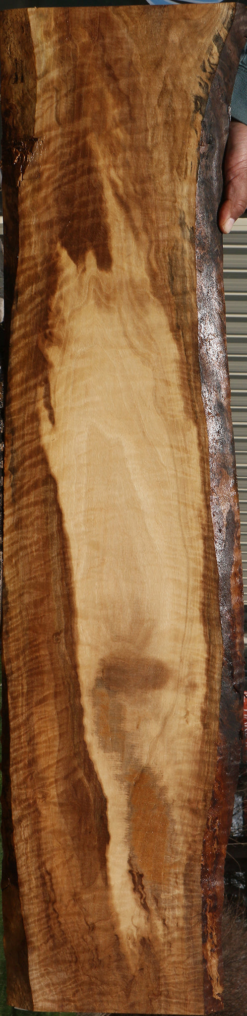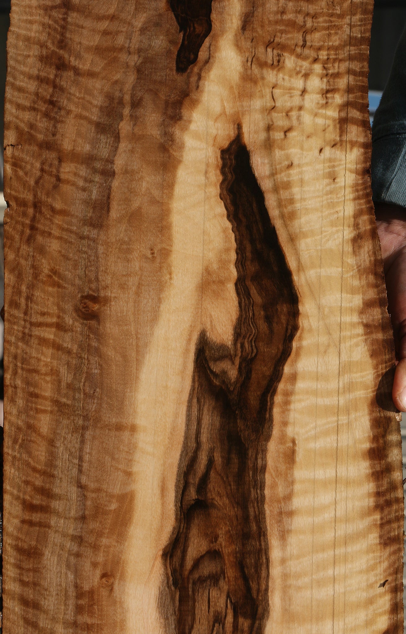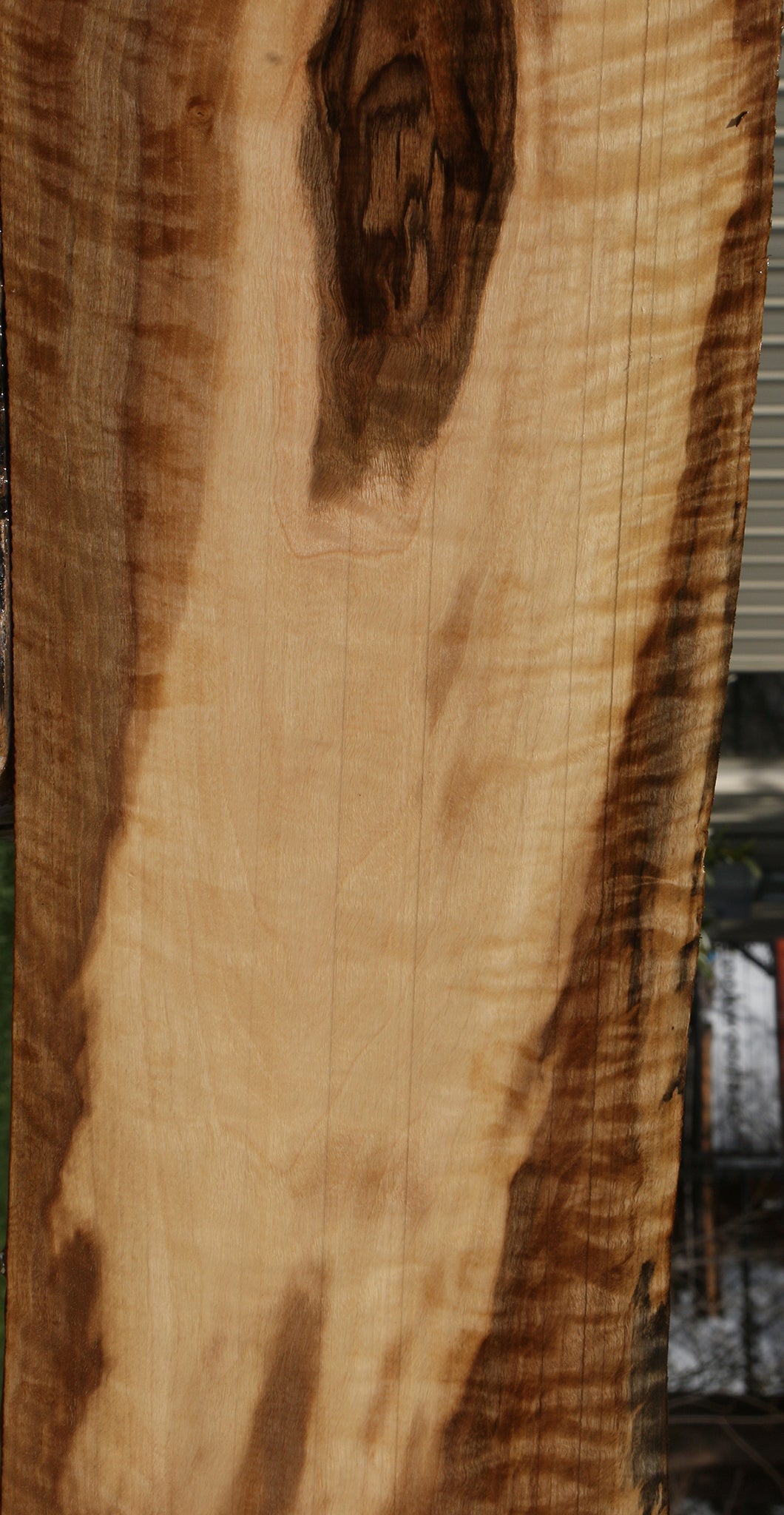 This beautiful material was cut from several hand-selected logs. Photos feature an array of color and figure, which varies in intensity and uniqueness from piece to piece depending on which part of the log the wood was cut from. This is kiln dried and has been surfaced on two sides. A minor surface check may be present. 1/16" to 1/8" bow or twist may be present in boards over 36". Hand picked for beauty, you’ll enjoy working this exquisite hardwood. This piece has planer skip and an edge split. Please see pictures for details.