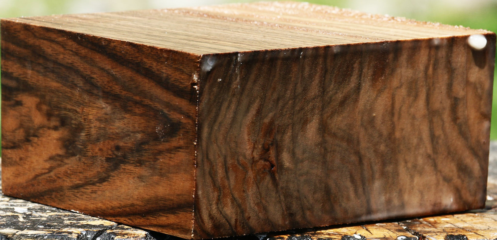 This beautiful material was cut from several hand-selected logs. Photos feature an array of color and figure, which varies in intensity and uniqueness from piece to piece, depending on which part of the log the wood was cut from. It was freshly cut in July of 2025 and contains moisture. This wood has been surfaced on two sides. Bowl blanks and turning squares are fully wax sealed. A minor surface check, inclusion, or rough edge may be present. Hand picked for beauty, you’ll enjoy working this exquisite hardwood.