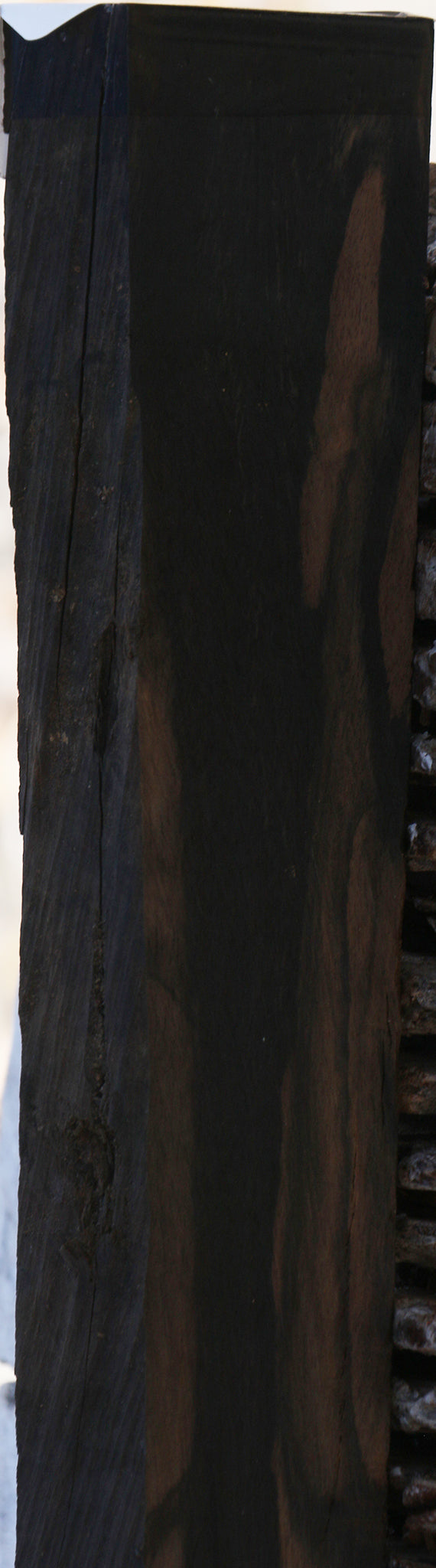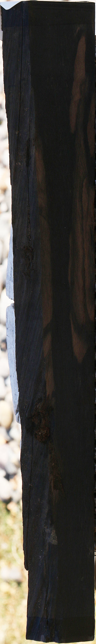 This high quality Ebony air dried in billets for over 10 years and was recently cut into lumber. The lumber is air dried to approximately 10-15% moisture and is ready to use. Gabon Ebony is highly sought after for its dark color. This is very high quality material with excellent color. A minor surface check, slightly rounded corner edge, pin holes, or machete edge may be present. When working Ebony, seal all cuts immediately to prevent checking. The ends of the board are wax sealed or the board is wax sealed completely. Create something truly amazing with this rare African gem. This piece has splits, checks, and inclusions. Please see pictures for details.