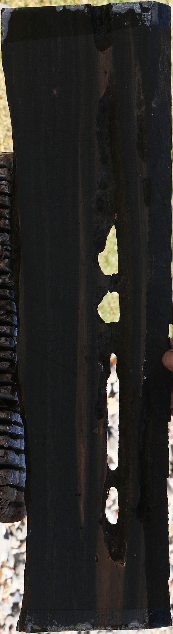 This high quality Ebony air dried in billets for over 10 years and was recently cut into lumber. The lumber is air dried to approximately 10-15% moisture and is ready to use. Gabon Ebony is highly sought after for its dark color. This is very high quality material with excellent color. A minor surface check, slightly rounded corner edge, pin holes, or machete edge may be present. When working Ebony, seal all cuts immediately to prevent checking. The ends of the board are wax sealed or the board is wax sealed completely. Create something truly amazing with this rare African gem. This piece has voids, bug holes, checks, splits, inclusions, and planer skip. Please see pictures for details.