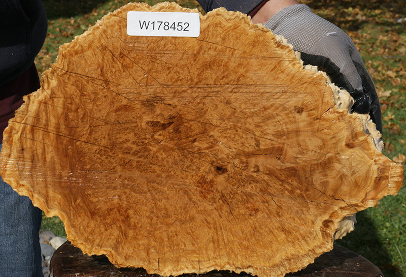 Goldfield burls are a rare and wonderful species from Australia that can be expected to yield exceptional projects! These burl caps have been air dried for three and a half years as of 2022 and may contain some residual moisture, but are mostly dry. They have been surfaced on the cut face to reveal the natural burl eyes & rich color. The natural, bark free back can be utilized creatively in a multitude of woodworking projects. Some checks and inclusions may be present. Please see photos for details, and feel free to call if you have any questions.