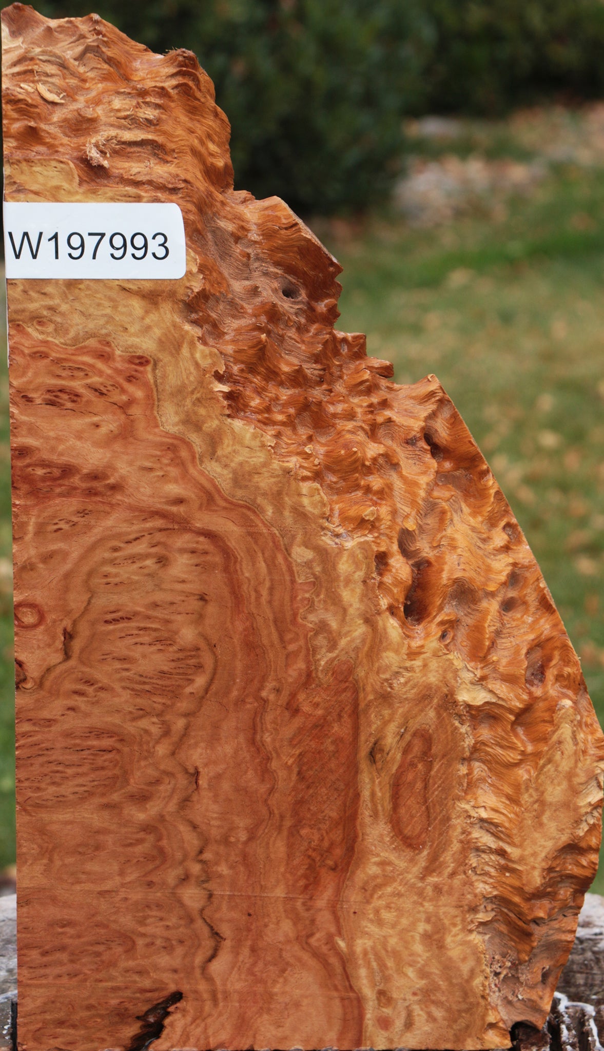 Goldfield burls are a rare and wonderful species from Australia that can be expected to yield exceptional projects! This burl piece has been air dried for five and a half years as of November of 2023 and may contain very slight residual moisture, but is mostly dry. Natural burl eyes & rich color will yield exceptionally beautiful woodworking projects. Checks, inclusions, and live edges may be present. Please see photos for details, and feel free to call if you have any questions.