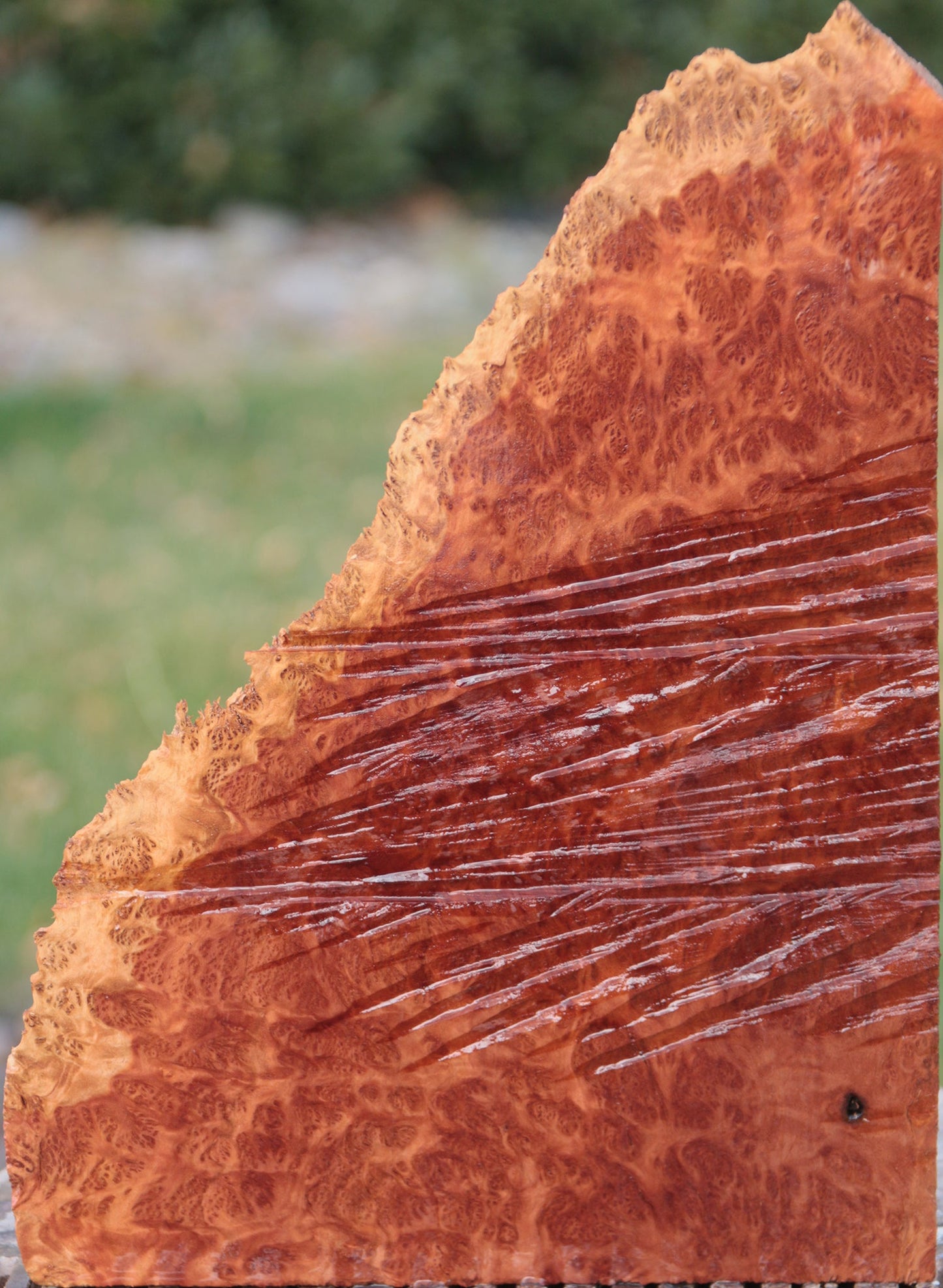 Goldfield burls are a rare and wonderful species from Australia that can be expected to yield exceptional projects! This burl piece has been air dried for five and a half years as of November of 2023 and may contain very slight residual moisture, but is mostly dry. Natural burl eyes & rich color will yield exceptionally beautiful woodworking projects. Checks, inclusions, and live edges may be present. Please see photos for details, and feel free to call if you have any questions. This piece also has planer skip.