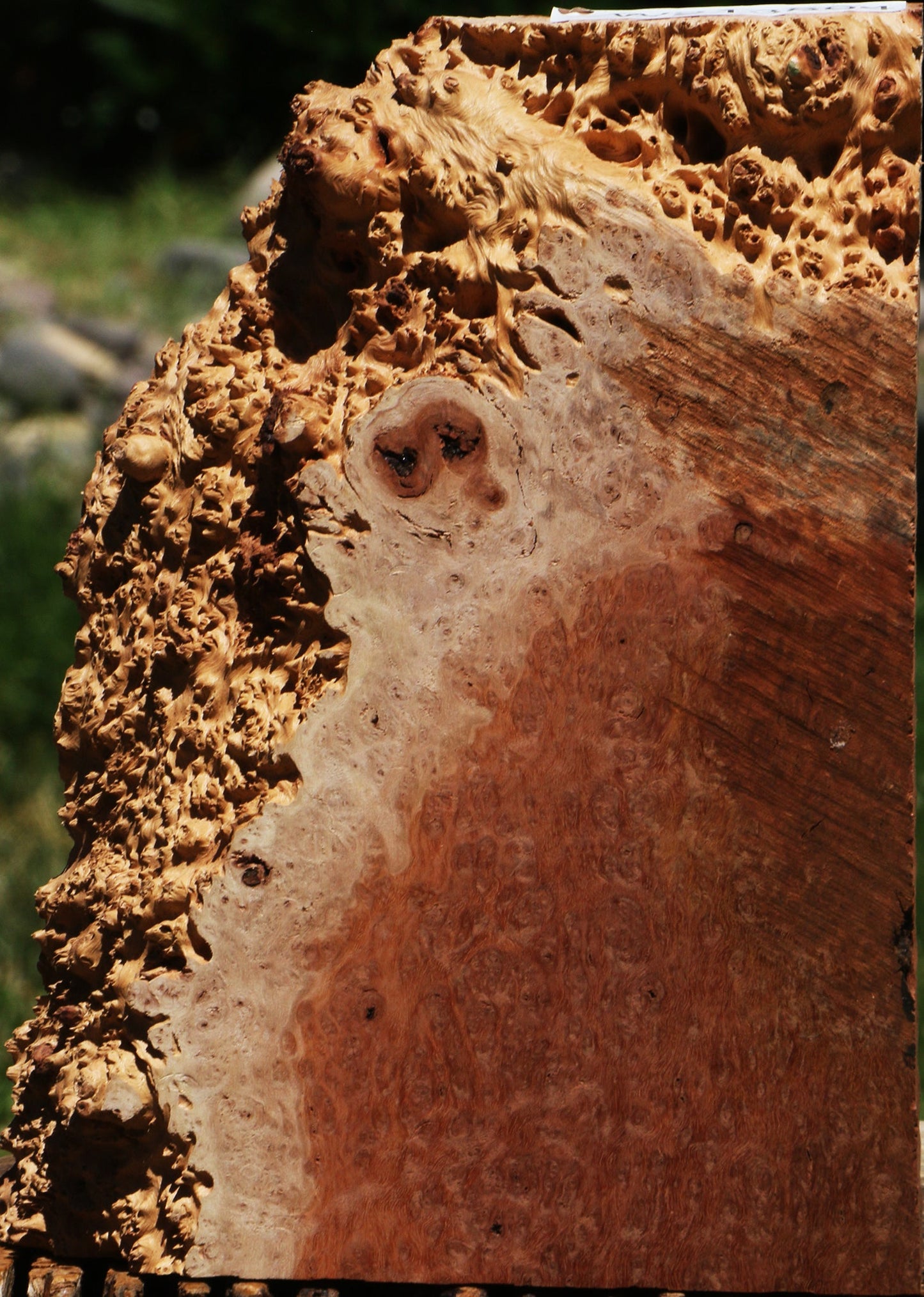 Goldfield burls are a rare and wonderful species from Australia that can be expected to yield exceptional projects! These burl pieces have been air dried for six and a half years as of 2024 and may contain some residual moisture, but are mostly dry. Natural burl eyes & rich color will yield exceptionally beautiful woodworking projects. Some surface checks, inclusions, and voids may be present. Please see photos for details, and feel free to call if you have any questions. This piece has inclusions, splits, planer skip, and checks. Please see pictures for details.