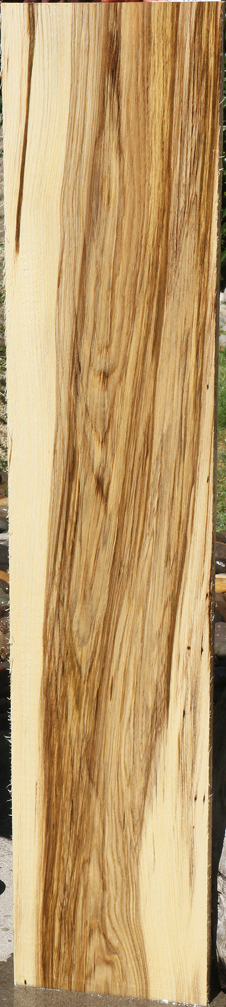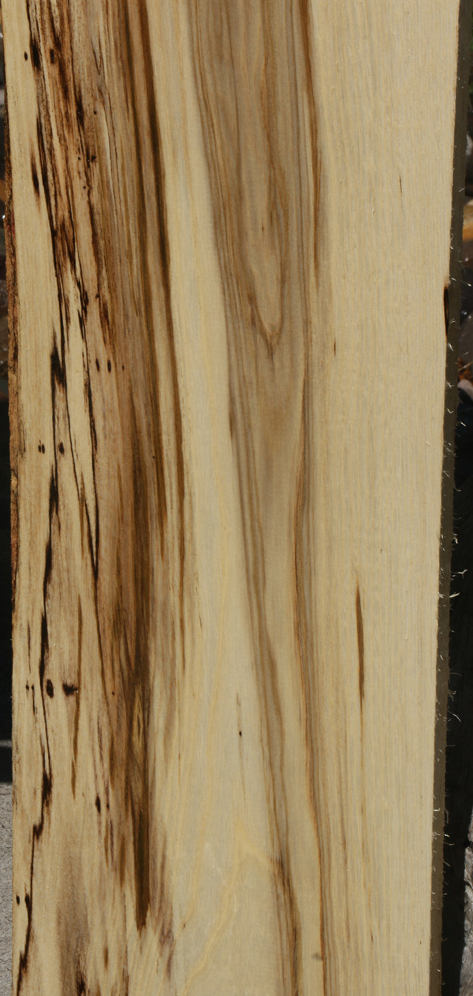 Hackberry has closed grain and shows fine, intricate patterns upon close examination. This wood was cut from a unique tree with strong black irregular grain in the heartwood. It is not truly spalted as the name implies, but looks very similar to spalting in other species, so this term is the most easily understood for describing the black veins that run through the wood. This lumber is kiln dried and surfaced on two sides. It is free of checks and other defects. There may be minor surface checks or a slight 1/8" bow or twist in boards over 36" long. This high quality wood is brimming with possibilities! This piece has bug holes. Please see pictures for details.