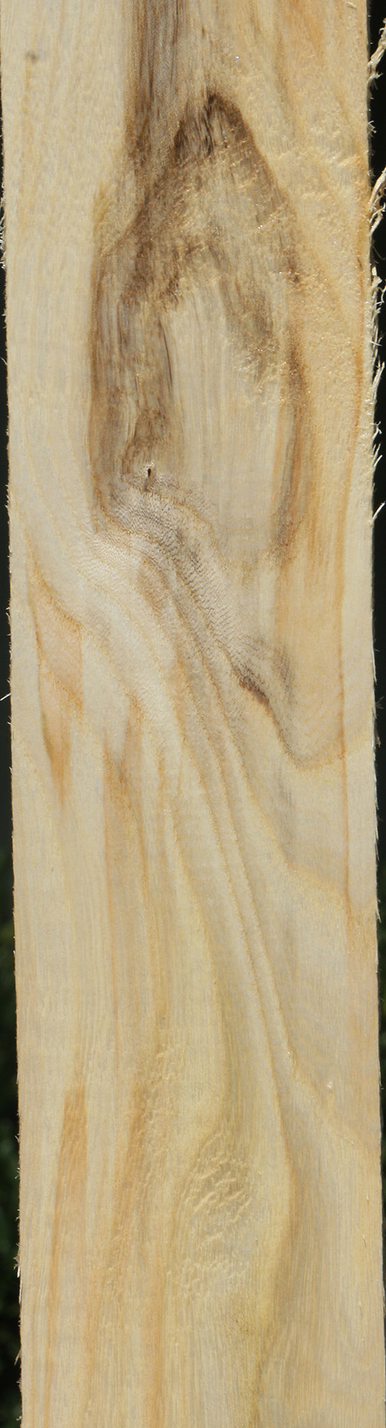 Hackberry has closed grain and shows fine, intricate patterns upon close examination. This wood was cut from a unique tree with strong black irregular grain in the heartwood. It is not truly spalted as the name implies, but looks very similar to spalting in other species, so this term is the most easily understood for describing the black veins that run through the wood. This lumber is kiln dried and surfaced on two sides. It is free of checks and other defects. There may be minor surface checks or a slight 1/8" bow or twist in boards over 36" long. This high quality wood is brimming with possibilities! This piece has bug holes. Please see pictures for details.