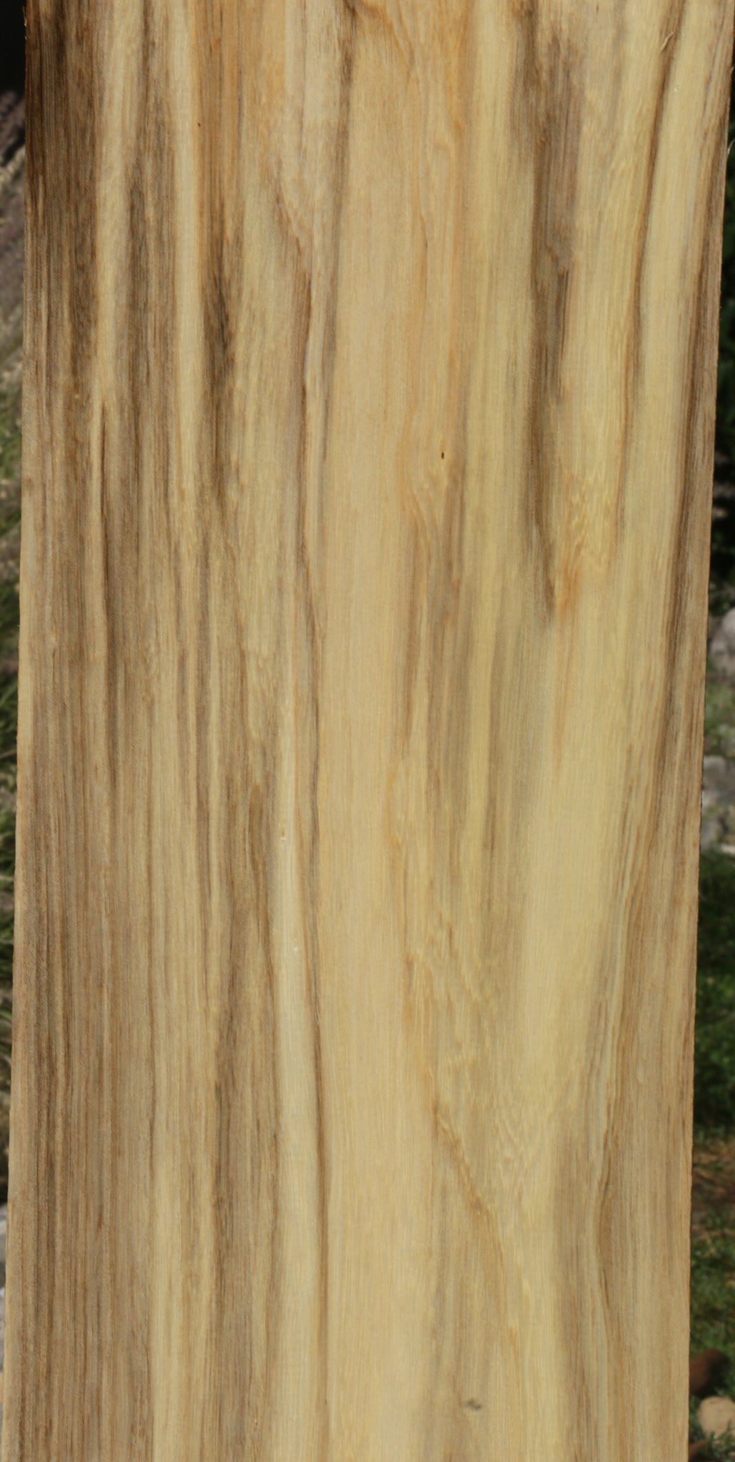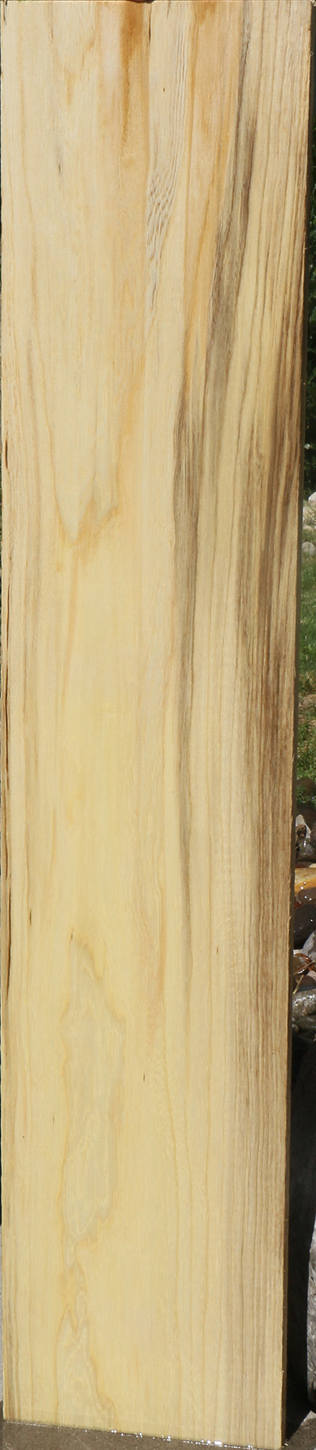 Hackberry has closed grain and shows fine, intricate patterns upon close examination. This wood was cut from a unique tree with strong black irregular grain in the heartwood. It is not truly spalted as the name implies, but looks very similar to spalting in other species, so this term is the most easily understood for describing the black veins that run through the wood. This lumber is kiln dried and surfaced on two sides. It is free of checks and other defects. There may be minor surface checks or a slight 1/8" bow or twist in boards over 36" long. This high quality wood is brimming with possibilities! This piece has inclusions. Please see pictures for details.
