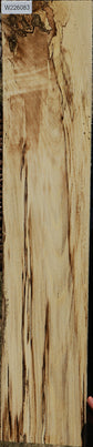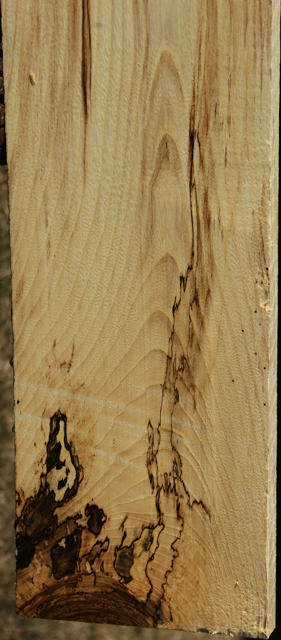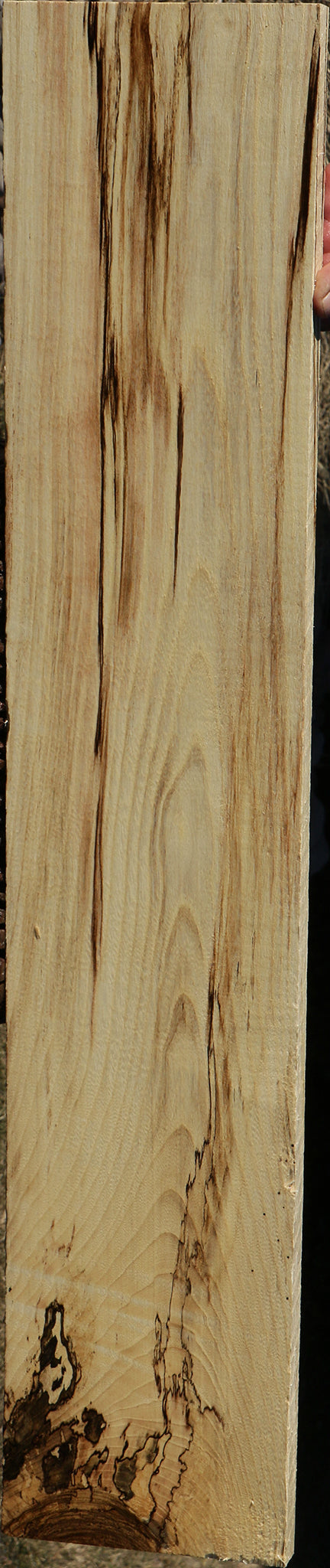 Hackberry has closed grain and shows fine, intricate patterns upon close examination. This wood was cut from a unique tree with strong black irregular grain in the heartwood. It is not truly spalted as the name implies, but looks very similar to spalting in other species, so this term is the most easily understood for describing the black veins that run through the wood. This lumber is kiln dried and surfaced on two sides. There may be worm holes and minor surface checks. A slight 1/8" bow or twist may be present in boards over 36" long. This high quality wood is brimming with possibilities! This piece has bug holes. Please see pictures for details.