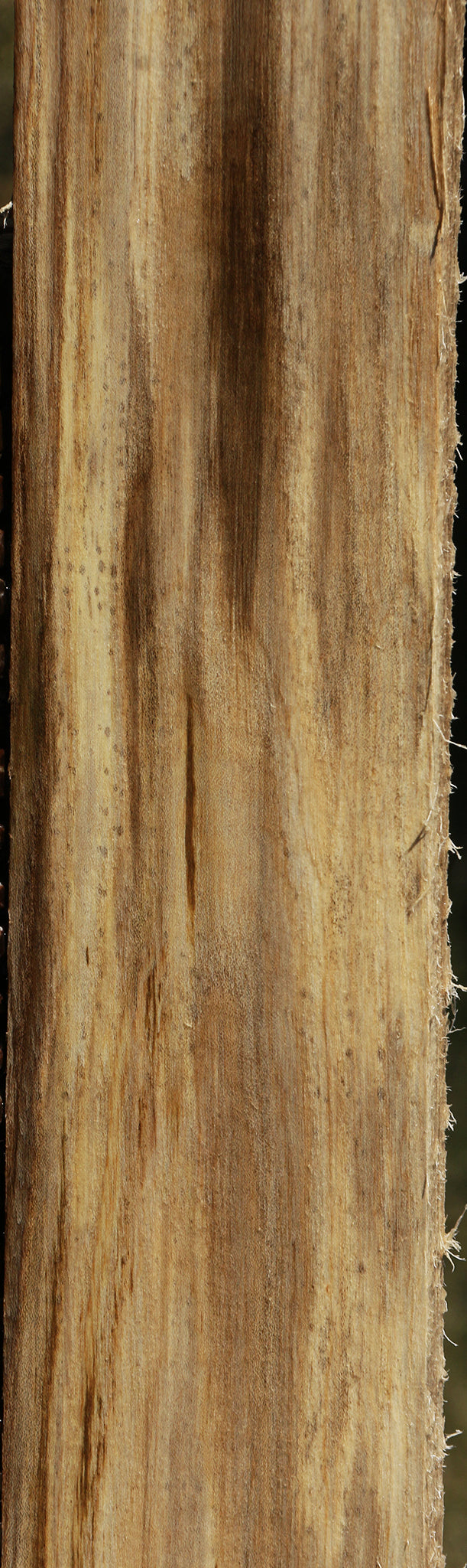 Hackberry has closed grain and shows fine, intricate patterns upon close examination. This wood was cut from a unique tree with strong black irregular grain in the heartwood. It is not truly spalted as the name implies, but looks very similar to spalting in other species, so this term is the most easily understood for describing the black veins that run through the wood. This lumber is kiln dried and surfaced on two sides. There may be worm holes and minor surface checks. A slight 1/8" bow or twist may be present in boards over 36" long. This high quality wood is brimming with possibilities!