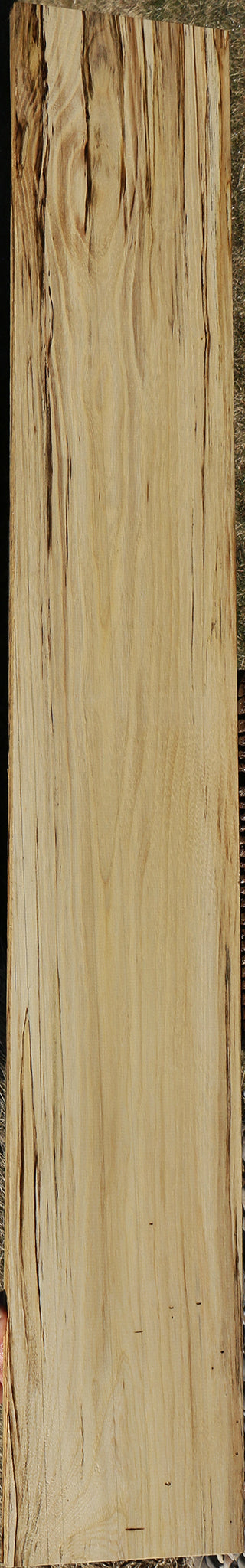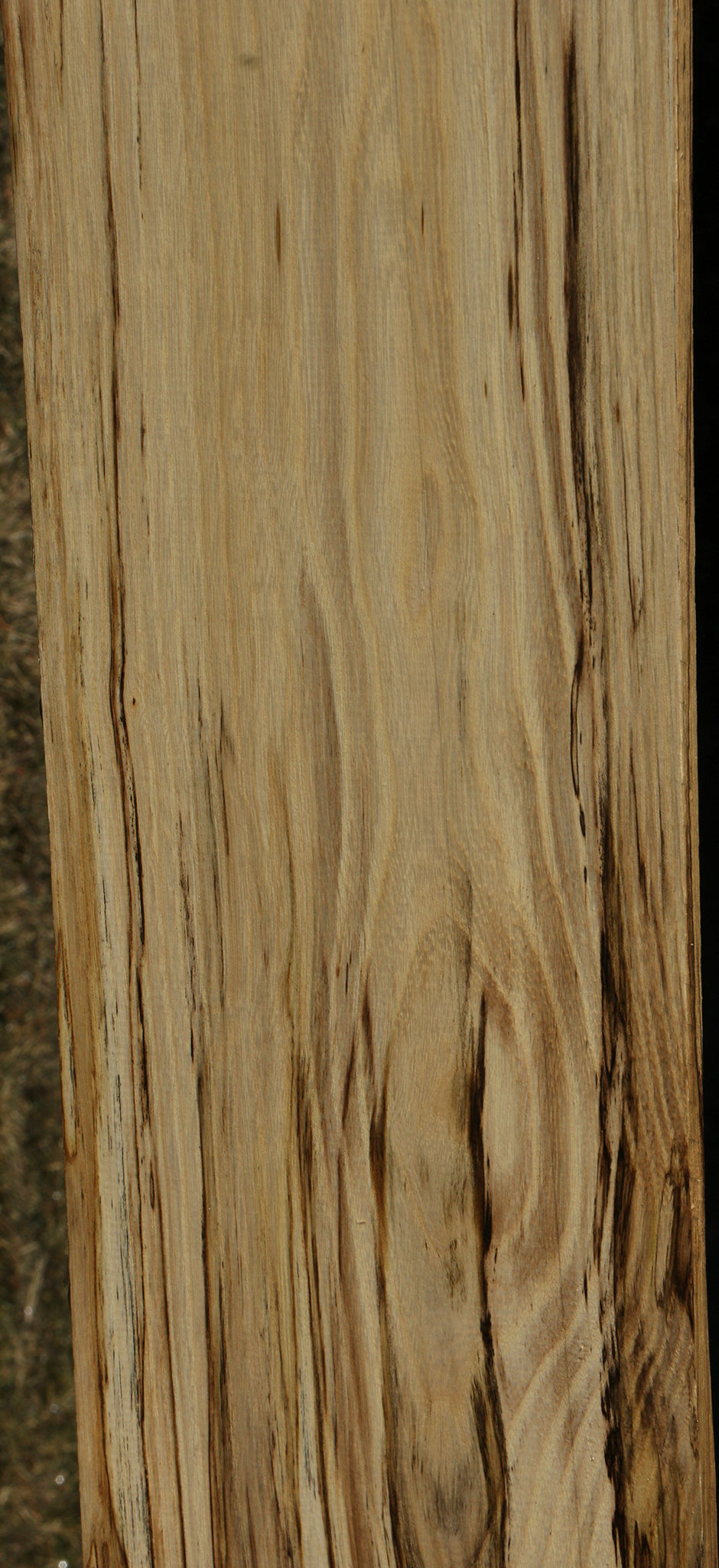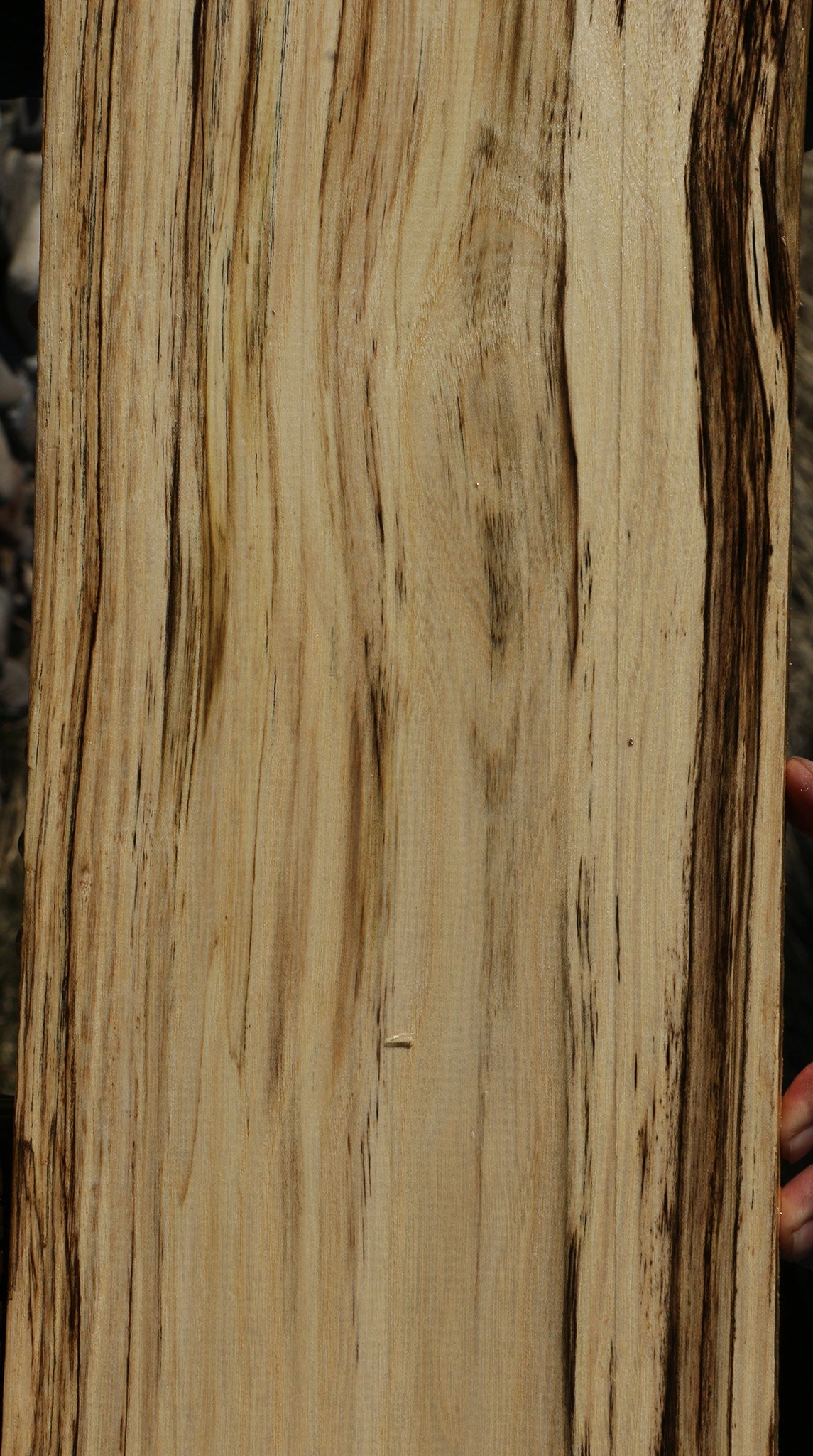Hackberry has closed grain and shows fine, intricate patterns upon close examination. This wood was cut from a unique tree with strong black irregular grain in the heartwood. It is not truly spalted as the name implies, but looks very similar to spalting in other species, so this term is the most easily understood for describing the black veins that run through the wood. This lumber is kiln dried and surfaced on two sides. There may be worm holes and minor surface checks. A slight 1/8" bow or twist may be present in boards over 36" long. This high quality wood is brimming with possibilities! This piece has bug holes. Please see pictures for details.