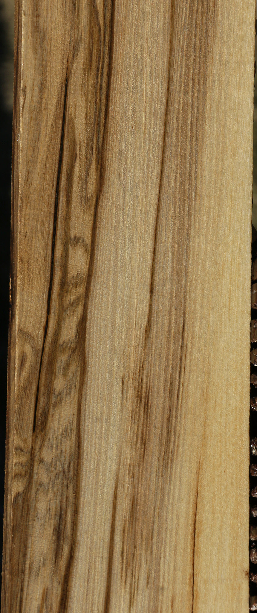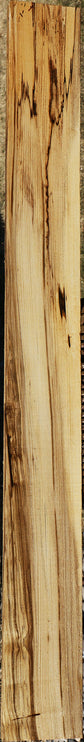 Hackberry has closed grain and shows fine, intricate patterns upon close examination. This wood was cut from a unique tree with strong black irregular grain in the heartwood. It is not truly spalted as the name implies, but looks very similar to spalting in other species, so this term is the most easily understood for describing the black veins that run through the wood. This lumber is kiln dried and surfaced on two sides. There may be worm holes and minor surface checks. A slight 1/8" bow or twist may be present in boards over 36" long. This high quality wood is brimming with possibilities! This piece has inclusions. Please see pictures for details.