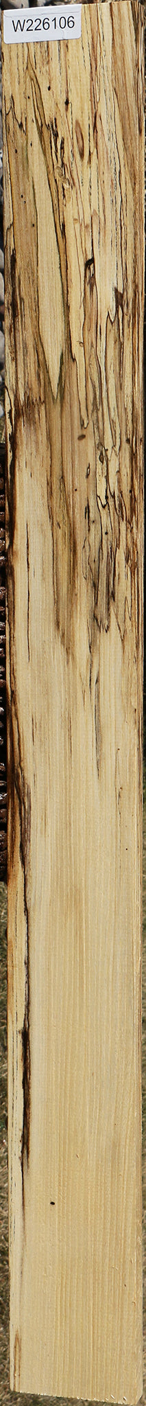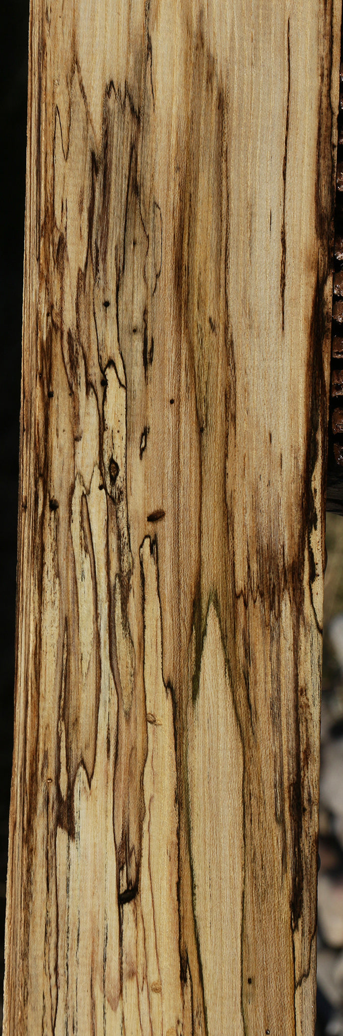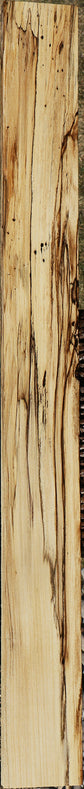 Hackberry has closed grain and shows fine, intricate patterns upon close examination. This wood was cut from a unique tree with strong black irregular grain in the heartwood. It is not truly spalted as the name implies, but looks very similar to spalting in other species, so this term is the most easily understood for describing the black veins that run through the wood. This lumber is kiln dried and surfaced on two sides. There may be worm holes and minor surface checks. A slight 1/8" bow or twist may be present in boards over 36" long. This high quality wood is brimming with possibilities! This piece has bug holes and pin holes. Please see pictures for details.