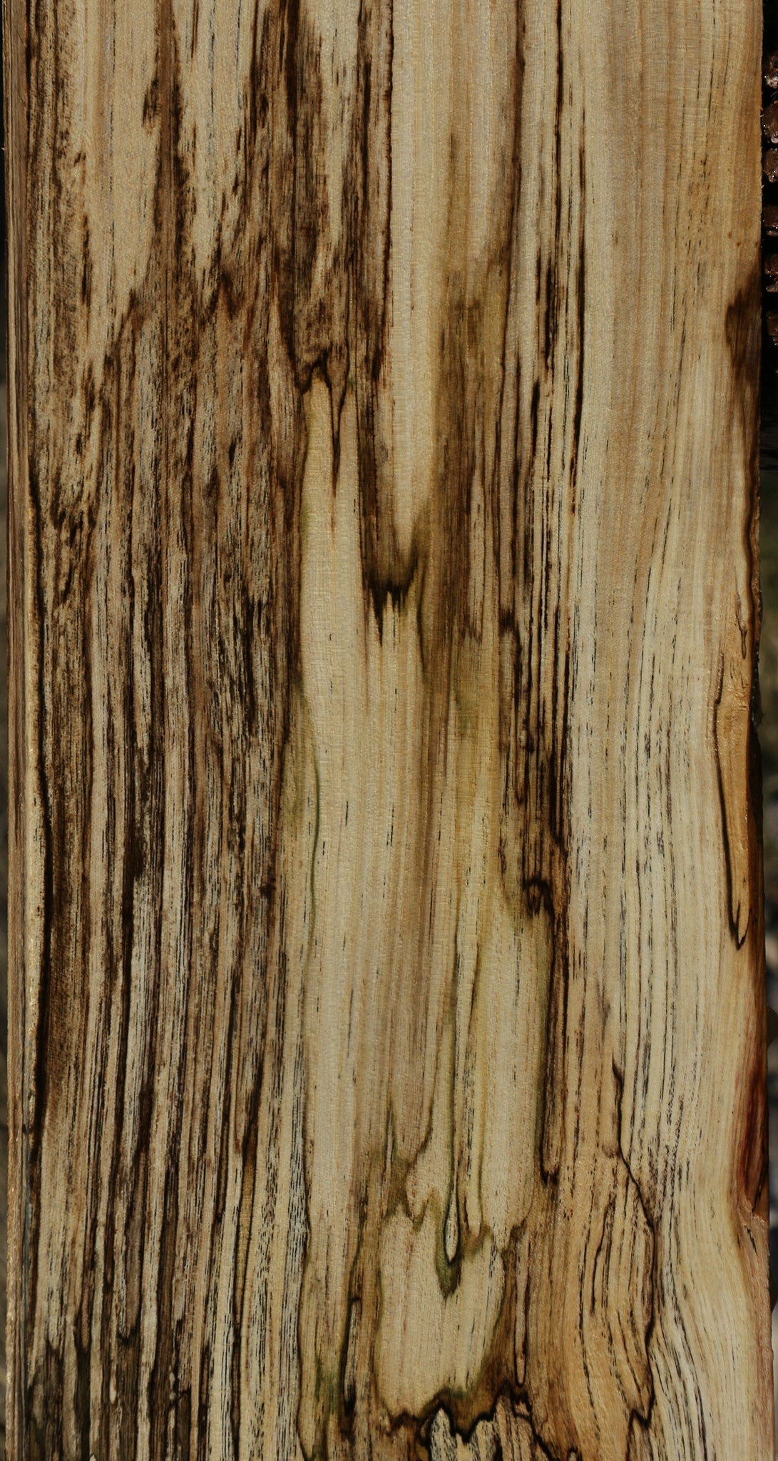 Hackberry has closed grain and shows fine, intricate patterns upon close examination. This wood was cut from a unique tree with strong black irregular grain in the heartwood. It is not truly spalted as the name implies, but looks very similar to spalting in other species, so this term is the most easily understood for describing the black veins that run through the wood. This lumber is kiln dried and surfaced on two sides. There may be worm holes and minor surface checks. A slight 1/8" bow or twist may be present in boards over 36" long. This high quality wood is brimming with possibilities!