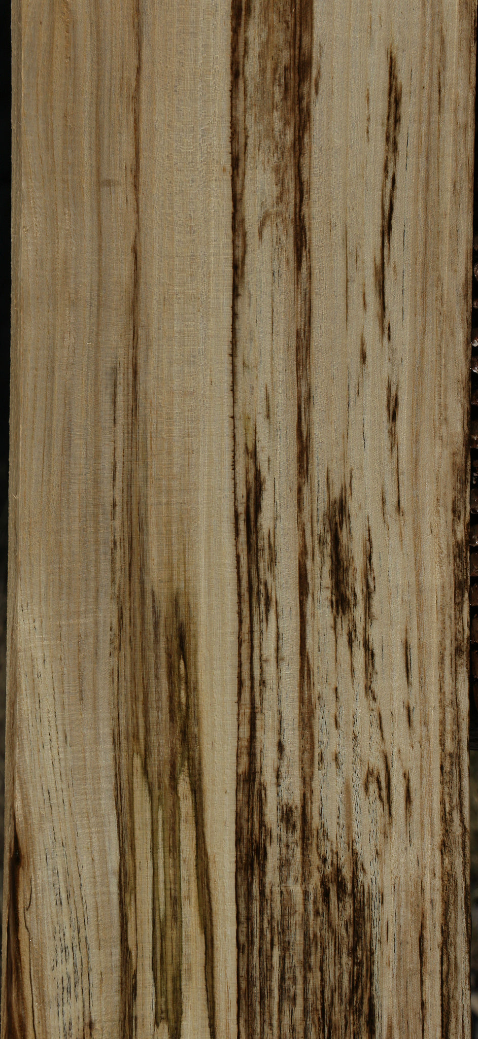 Hackberry has closed grain and shows fine, intricate patterns upon close examination. This wood was cut from a unique tree with strong black irregular grain in the heartwood. It is not truly spalted as the name implies, but looks very similar to spalting in other species, so this term is the most easily understood for describing the black veins that run through the wood. This lumber is kiln dried and surfaced on two sides. There may be worm holes and minor surface checks. A slight 1/8" bow or twist may be present in boards over 36" long. This high quality wood is brimming with possibilities!