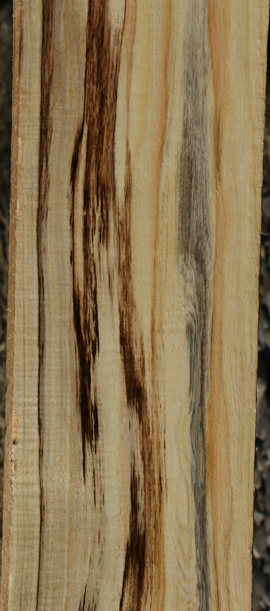 Hackberry has closed grain and shows fine, intricate patterns upon close examination. This wood was cut from a unique tree with strong black irregular grain in the heartwood. It is not truly spalted as the name implies, but looks very similar to spalting in other species, so this term is the most easily understood for describing the black veins that run through the wood. This lumber is kiln dried and surfaced on two sides. There may be worm holes and minor surface checks. A slight 1/8" bow or twist may be present in boards over 36" long. This high quality wood is brimming with possibilities!