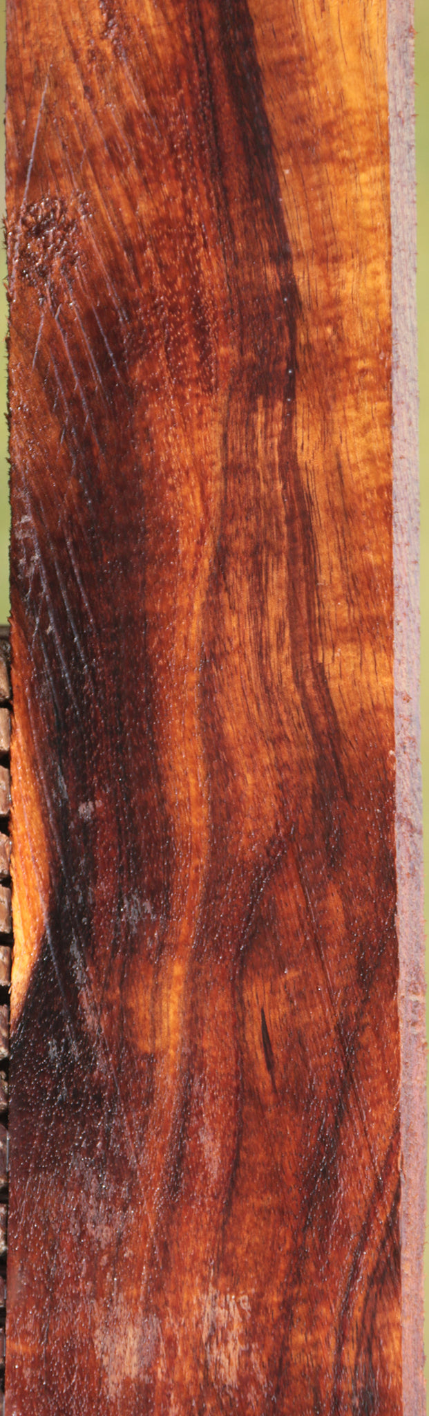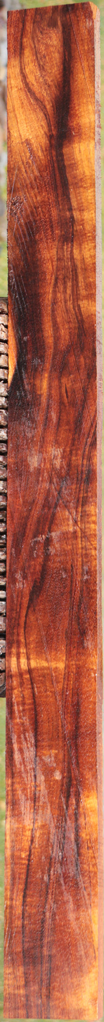 This vintage Hawaiian Koa lumber has warm, rich colors with unrivaled iridescence and curl. An occasional bug hole or check may be present. Some pieces may have pin holes in the sapwood or a bow/twist that will lay flat with minimal pressure. This wonderful Koa is kiln dried, surfaced on two sides, and is ready to use. Beautiful curly figure will vary from piece to piece. This is some of the finest color and figure we’ve seen in years. It was saved from a stash that was cut in 1986. This Koa is a rare treasure! This piece has planer skip. Please see pictures for details.