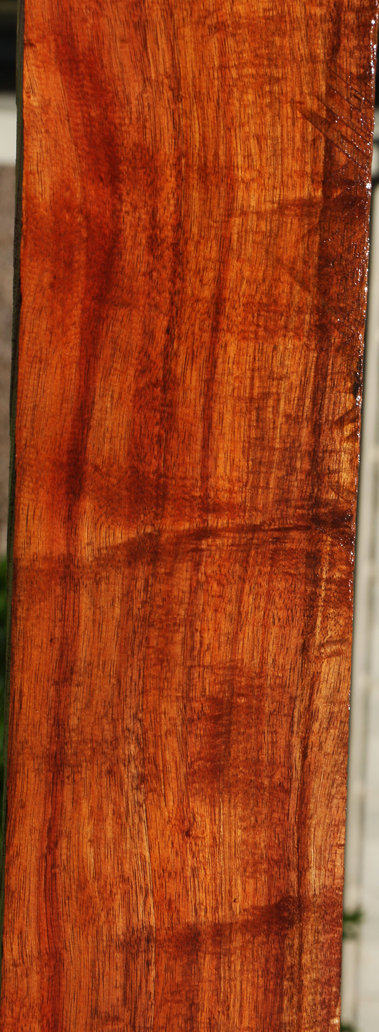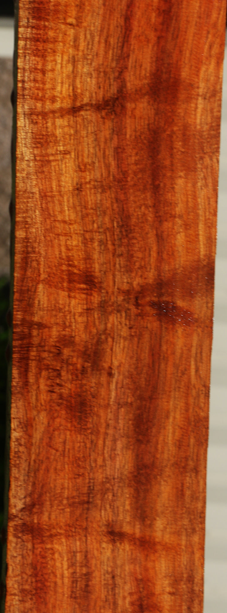 This vintage Hawaiian Koa lumber has warm, rich colors with unrivaled iridescence and curl. An occasional bug hole or check may be present. Some pieces may have pin holes in the sapwood or a bow/twist that will lay flat with minimal pressure. This wonderful Koa is kiln dried, surfaced on two sides, and is ready to use. Beautiful curly figure will vary from piece to piece. This is some of the finest color and figure we’ve seen in years. It was saved from a stash that was cut in 1986. This Koa is a rare treasure! This piece has planer skip. Please see pictures for details.