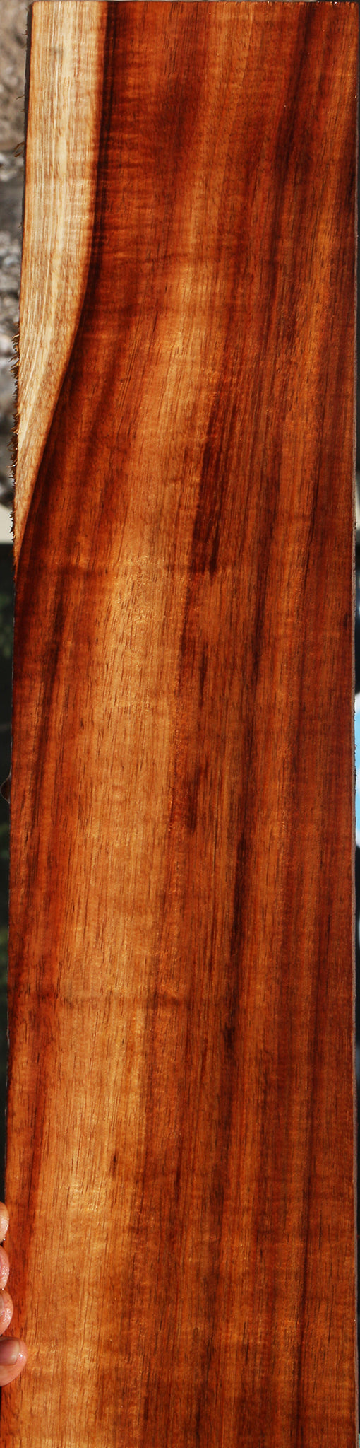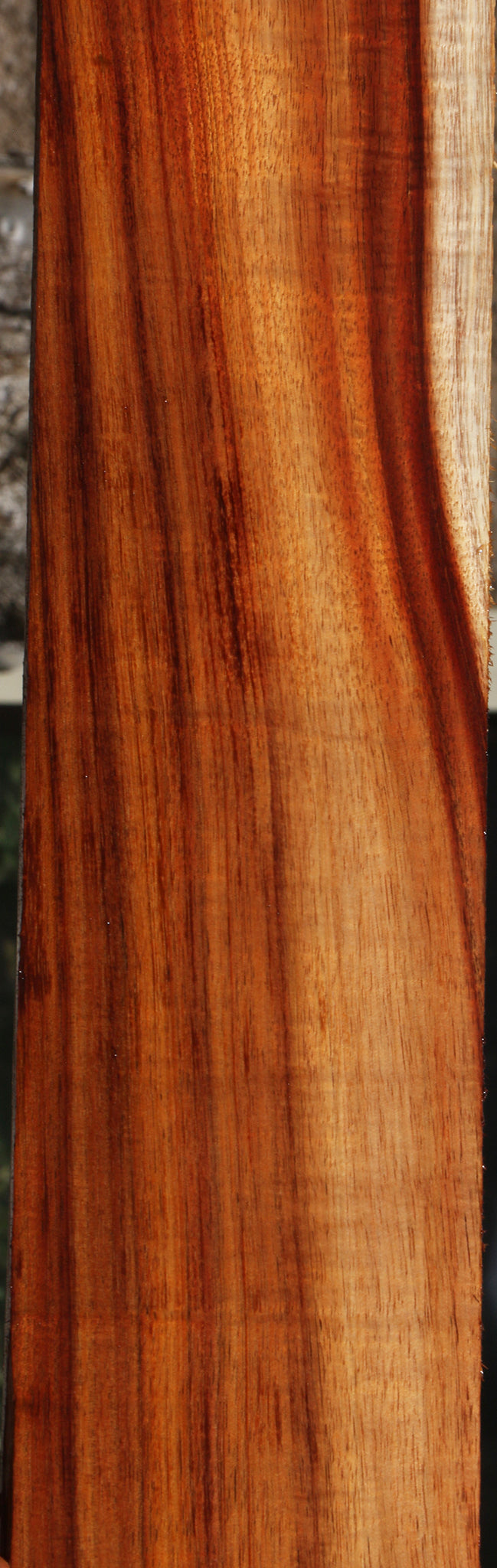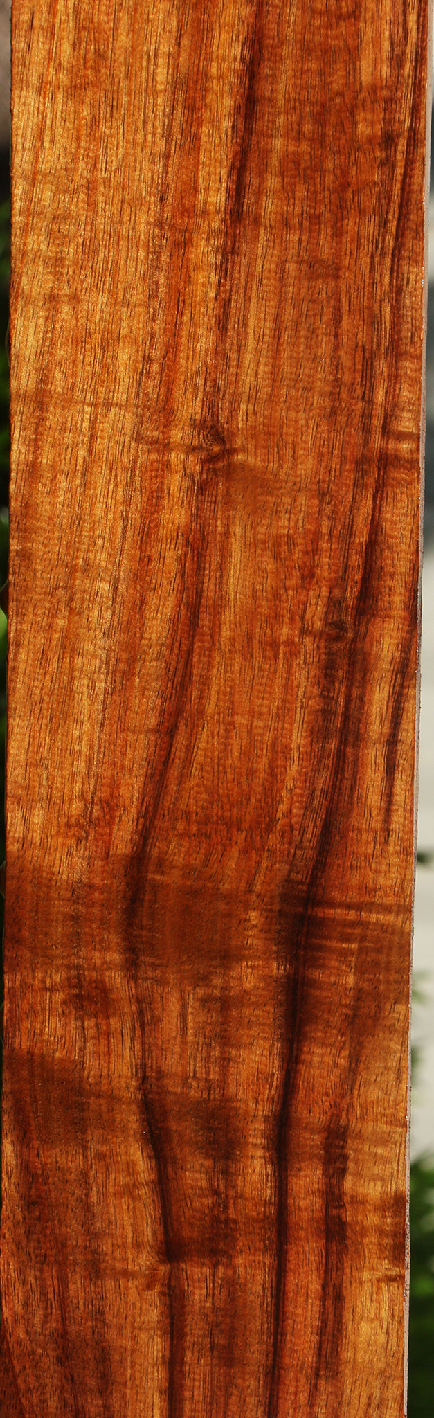 This vintage Hawaiian Koa lumber has warm, rich colors with unrivaled iridescence and curl. An occasional bug hole or check may be present. Some pieces may have pin holes in the sapwood or a bow/twist that will lay flat with minimal pressure. This wonderful Koa is kiln dried, surfaced on two sides, and is ready to use. Beautiful curly figure will vary from piece to piece. This is some of the finest color and figure we’ve seen in years. It was saved from a stash that was cut in 1986. This Koa is a rare treasure!