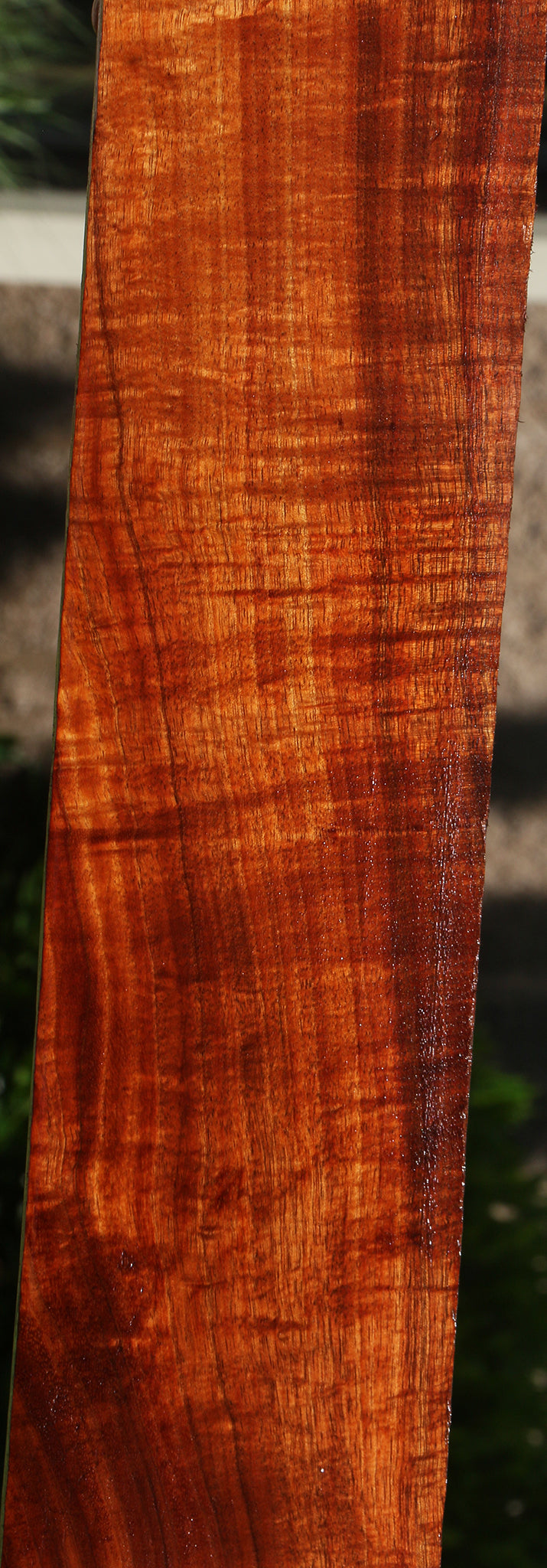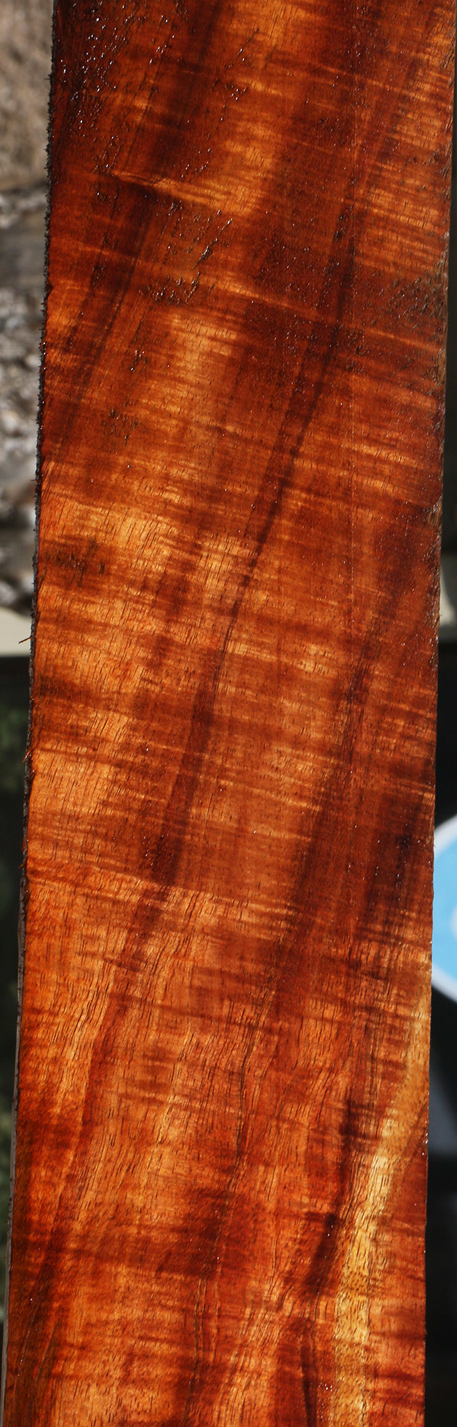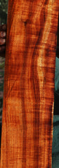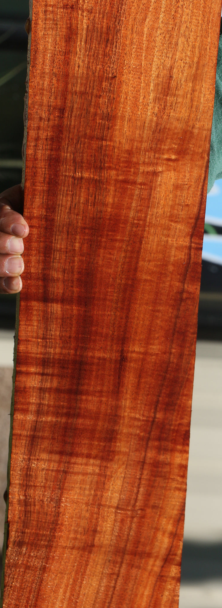 This vintage Hawaiian Koa lumber has warm, rich colors with unrivaled iridescence and curl. An occasional bug hole or check may be present. Some pieces may have pin holes in the sapwood or a bow/twist that will lay flat with minimal pressure. This wonderful Koa is kiln dried, surfaced on two sides, and is ready to use. Beautiful curly figure will vary from piece to piece. This is some of the finest color and figure we’ve seen in years. It was saved from a stash that was cut in 1986. This Koa is a rare treasure!