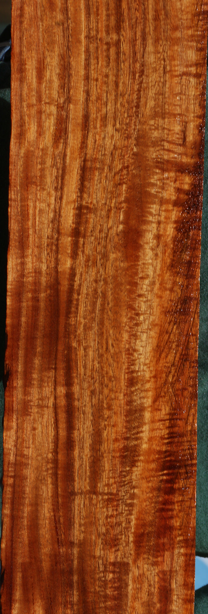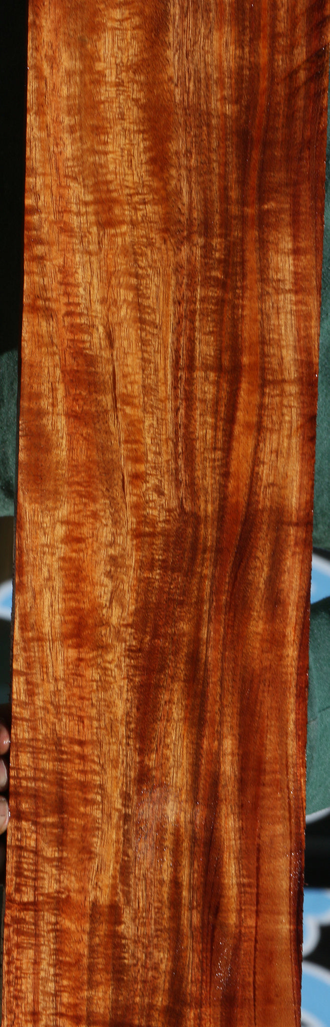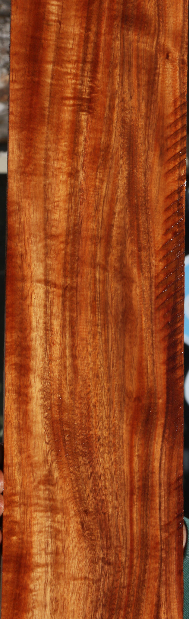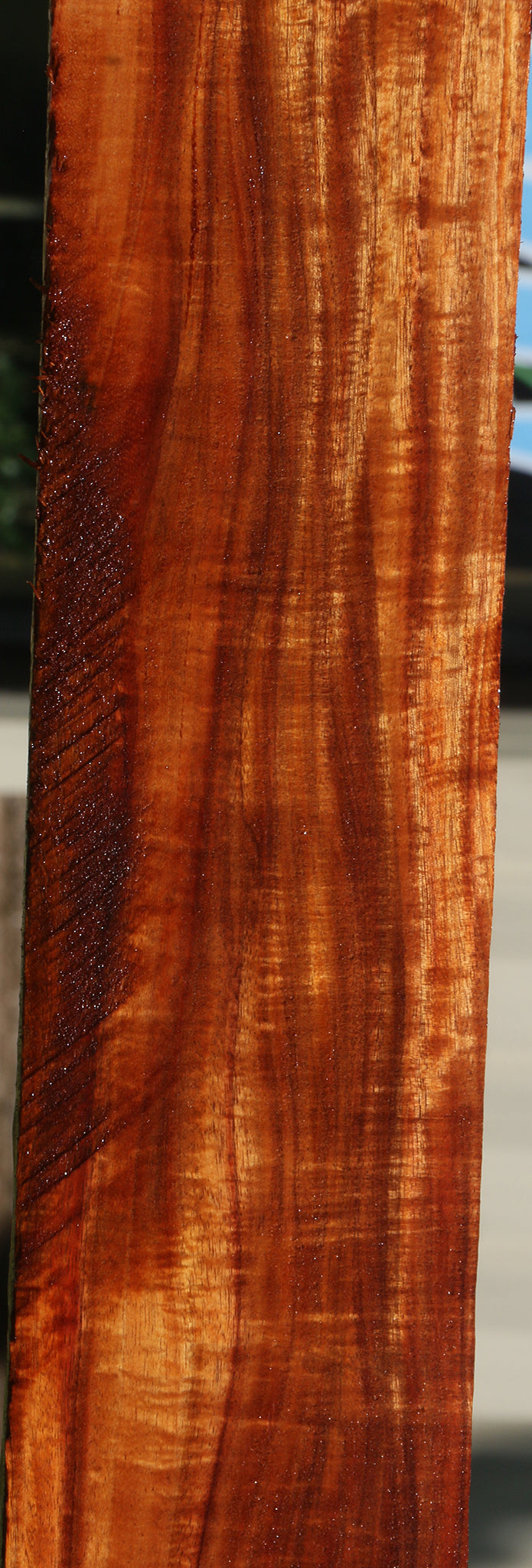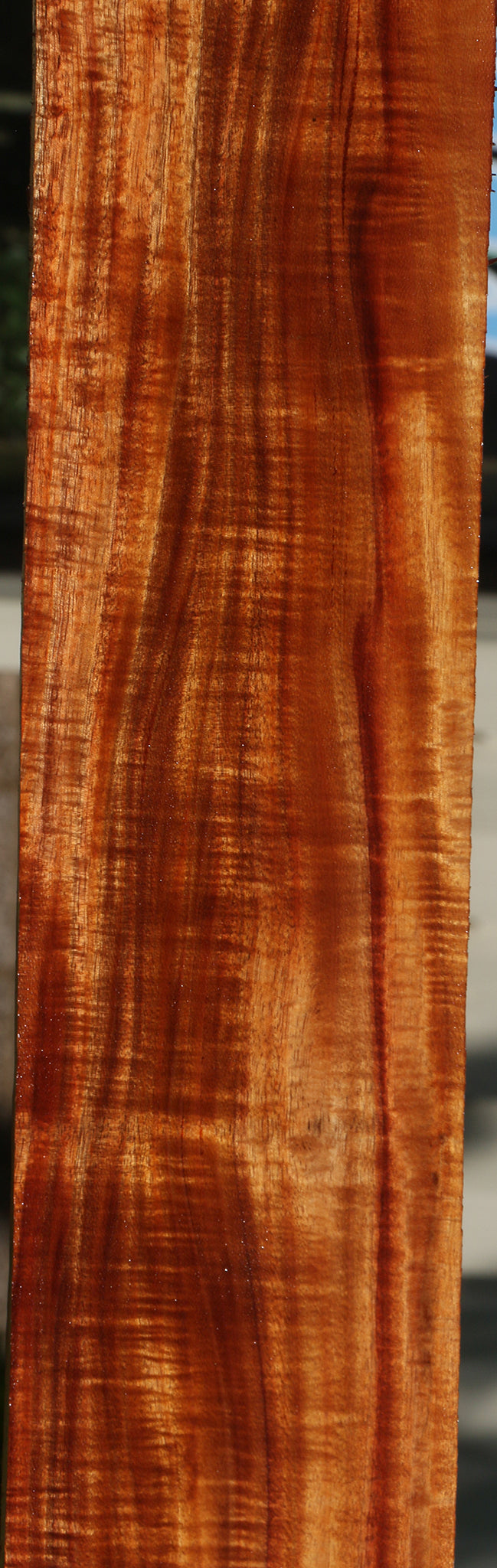 This vintage Hawaiian Koa lumber has warm, rich colors with unrivaled iridescence and curl. An occasional bug hole or check may be present. Some pieces may have pin holes in the sapwood or a bow/twist that will lay flat with minimal pressure. This wonderful Koa is kiln dried, surfaced on two sides, and is ready to use. Beautiful curly figure will vary from piece to piece. This is some of the finest color and figure we’ve seen in years. It was saved from a stash that was cut in 1986. This Koa is a rare treasure! This piece has planer skip. Please see pictures for details.
