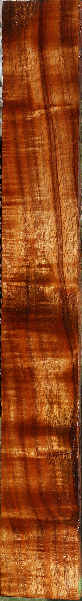 This vintage Hawaiian Koa lumber has warm, rich colors with unrivaled iridescence and curl. An occasional bug hole or check may be present. Some pieces may have pin holes in the sapwood or a bow/twist that will lay flat with minimal pressure. This wonderful Koa is kiln dried, surfaced on two sides, and is ready to use. Beautiful curly figure will vary from piece to piece. This is some of the finest color and figure we’ve seen in years. It was saved from a stash that was cut in 1986. This Koa is a rare treasure! This piece has planer skip. Please see pictures for details.