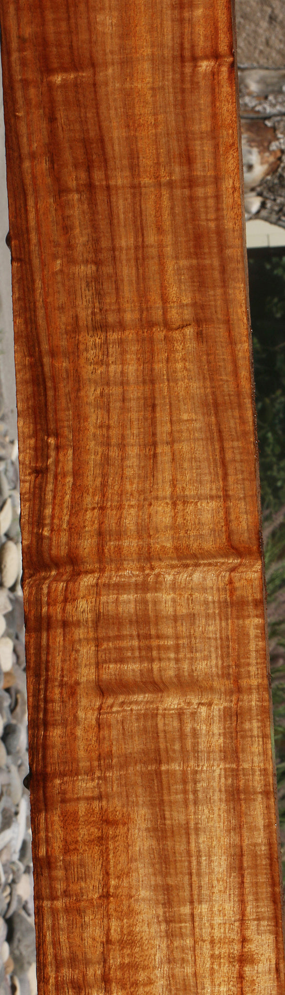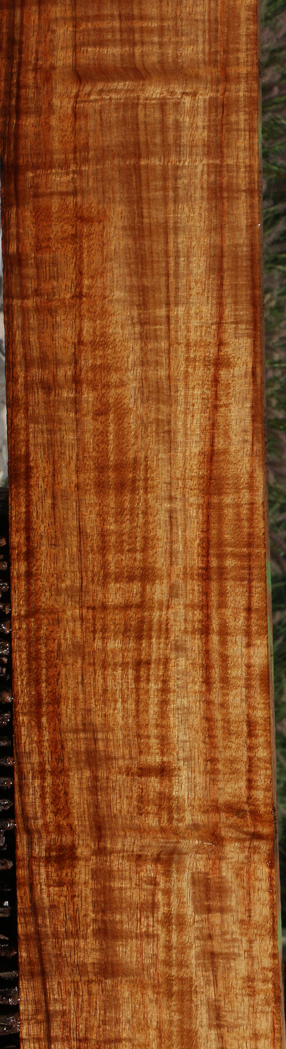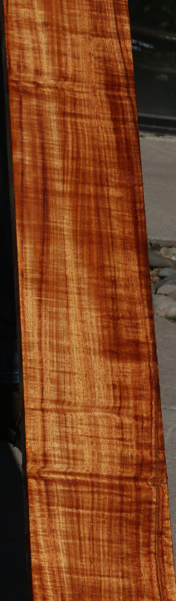 This vintage Hawaiian Koa lumber has warm, rich colors with unrivaled iridescence and curl. An occasional bug hole or check may be present. Some pieces may have pin holes in the sapwood or a bow/twist that will lay flat with minimal pressure. This wonderful Koa is kiln dried, surfaced on two sides, and is ready to use. Beautiful curly figure will vary from piece to piece. This is some of the finest color and figure we’ve seen in years. It was saved from a stash that was cut in 1986. This Koa is a rare treasure!