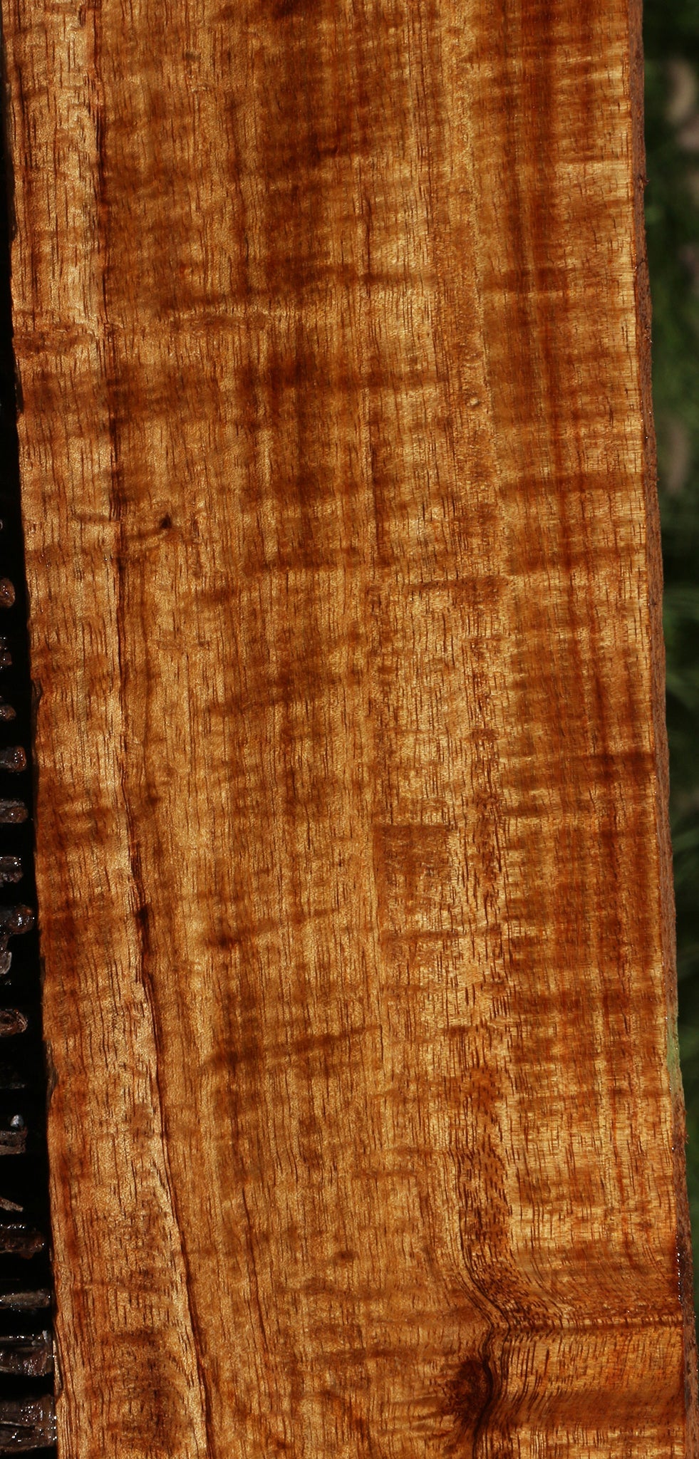 This vintage Hawaiian Koa lumber has warm, rich colors with unrivaled iridescence and curl. An occasional bug hole or check may be present. Some pieces may have pin holes in the sapwood or a bow/twist that will lay flat with minimal pressure. This wonderful Koa is kiln dried, surfaced on two sides, and is ready to use. Beautiful curly figure will vary from piece to piece. This is some of the finest color and figure we’ve seen in years. It was saved from a stash that was cut in 1986. This Koa is a rare treasure! This piece has inclusions. Please see pictures for details.
