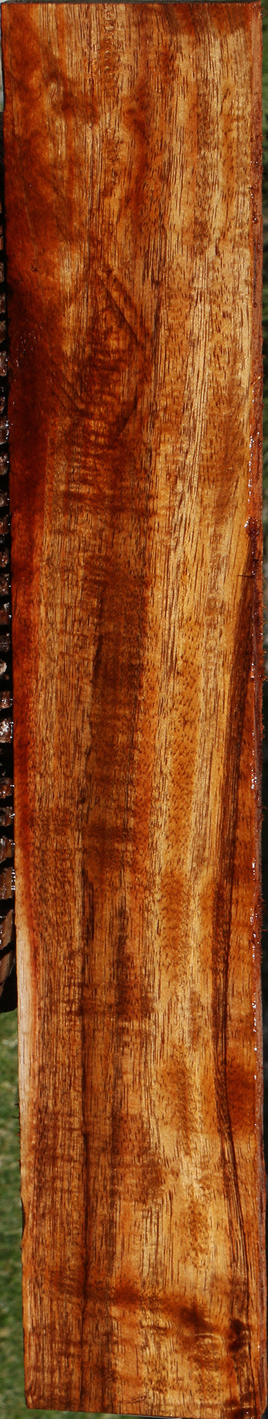 This vintage Hawaiian Koa lumber has warm, rich colors with unrivaled iridescence and curl. An occasional bug hole or check may be present. Some pieces may have pin holes in the sapwood or a bow/twist that will lay flat with minimal pressure. This wonderful Koa is kiln dried, surfaced on two sides, and is ready to use. Beautiful curly figure will vary from piece to piece. This is some of the finest color and figure we’ve seen in years. It was saved from a stash that was cut in 1986. This Koa is a rare treasure!