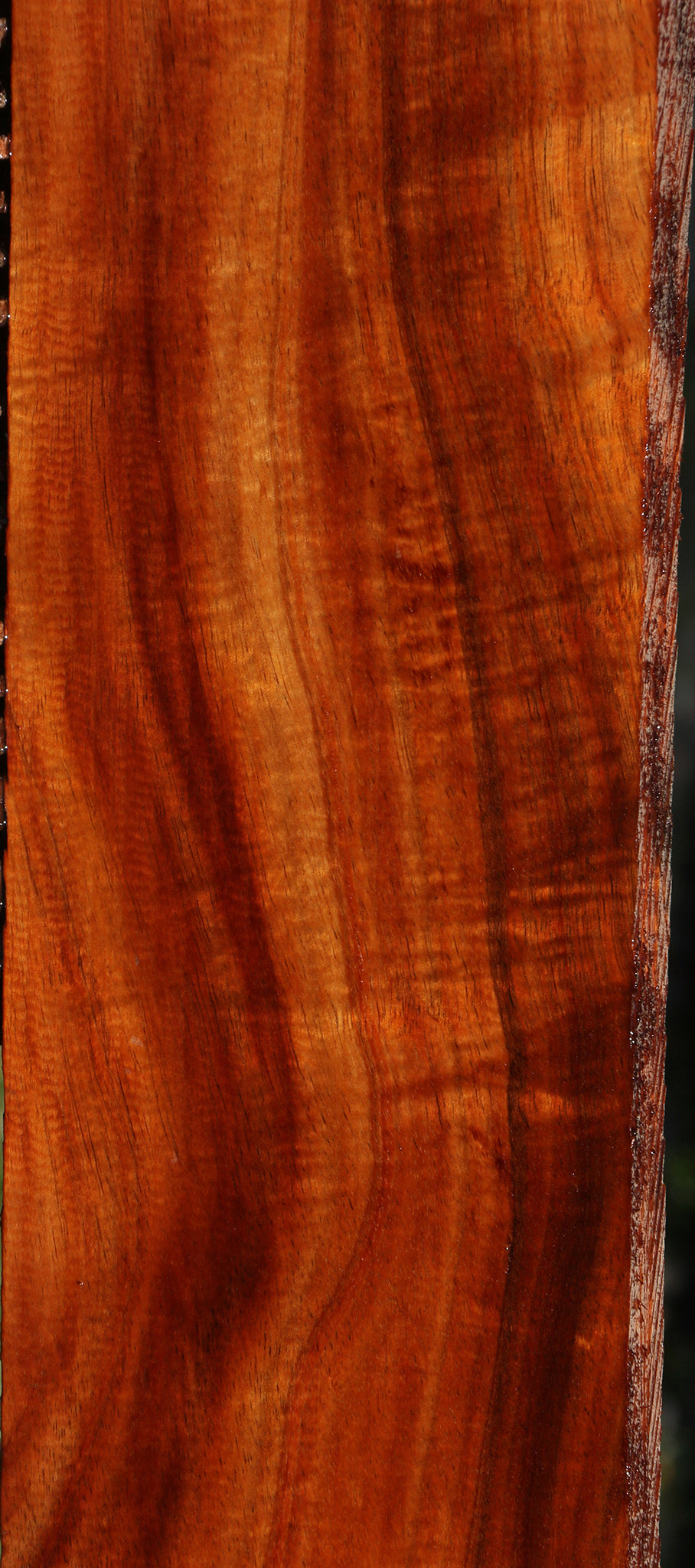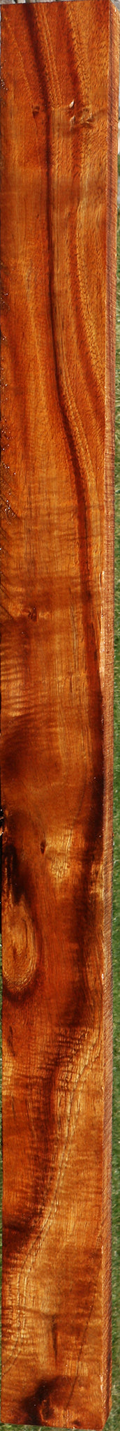 This vintage Hawaiian Koa lumber has warm, rich colors with unrivaled iridescence and curl. An occasional bug hole or check may be present. Some pieces may have pin holes in the sapwood or a bow/twist that will lay flat with minimal pressure. This wonderful Koa is kiln dried, surfaced on two sides, and is ready to use. Beautiful curly figure will vary from piece to piece. This is some of the finest color and figure we’ve seen in years. It was saved from a stash that was cut in 1986. This Koa is a rare treasure!