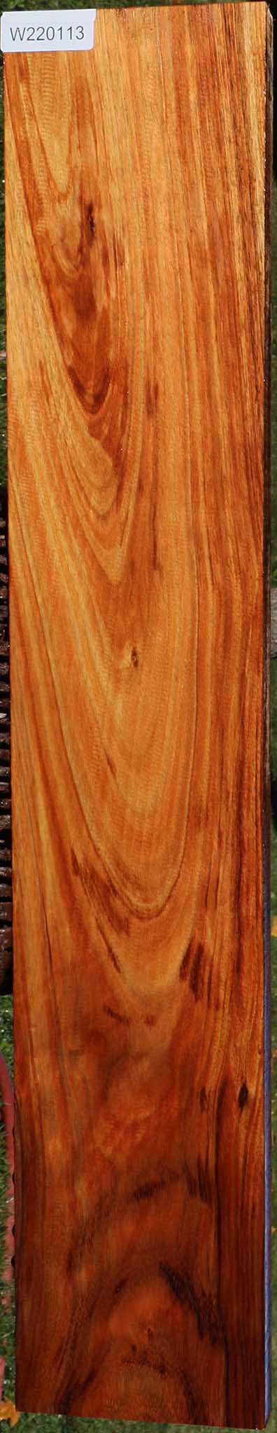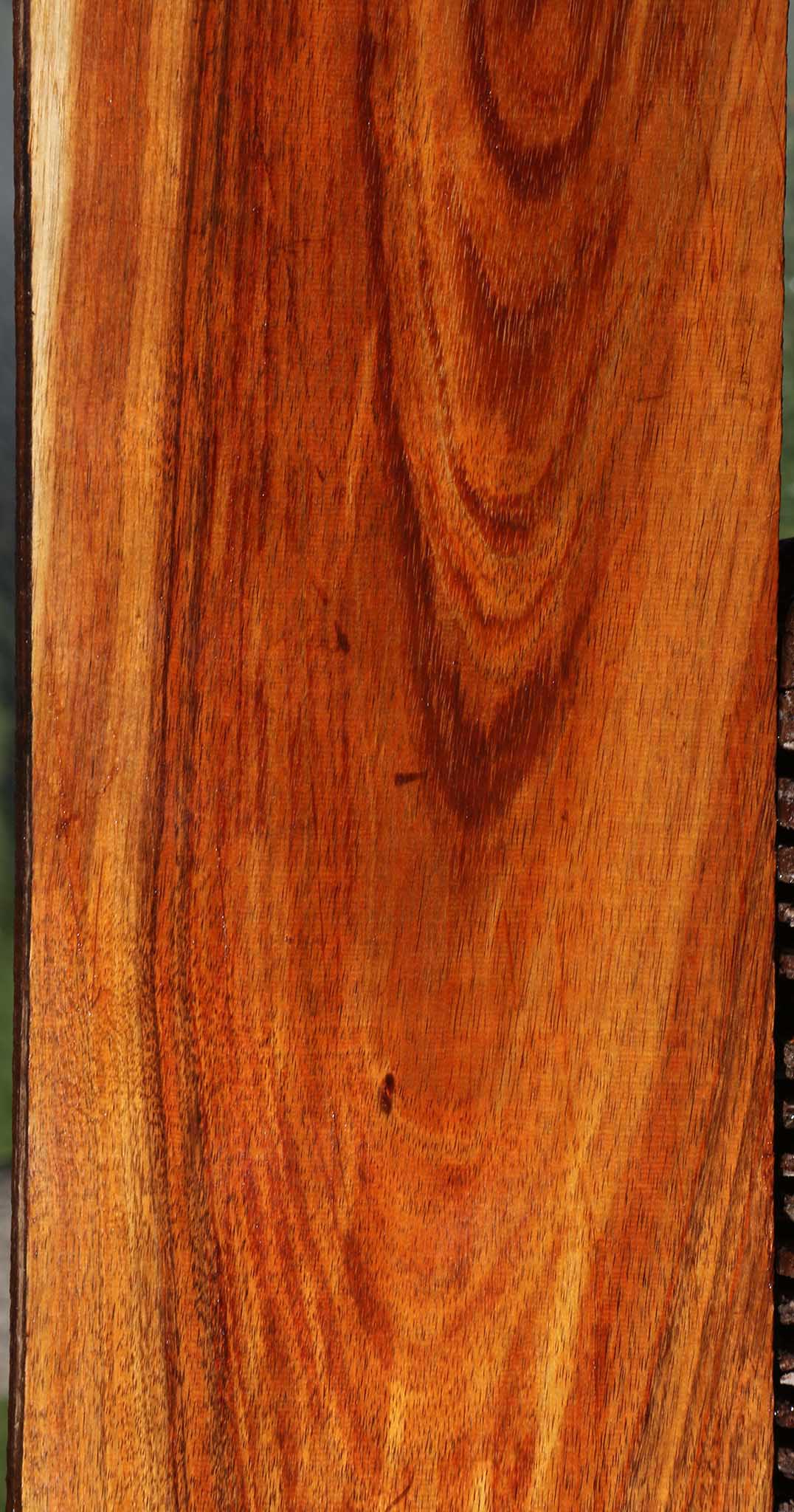 This vintage Hawaiian Koa lumber has warm, rich colors with unrivaled iridescence and curl. An occasional bug hole or check may be present. Some pieces may have pin holes in the sapwood or a 1/16" to 1/8" bow/twist that will lay flat with minimal pressure. This wonderful Koa is kiln dried, surfaced on two sides, and is ready to use. Beautiful curly figure will vary from piece to piece. This is some of the finest color and figure we’ve seen in years. It was saved from a stash that was cut in 1986. This Koa is a rare treasure! This piece has inclusions. Please see pictures for details.